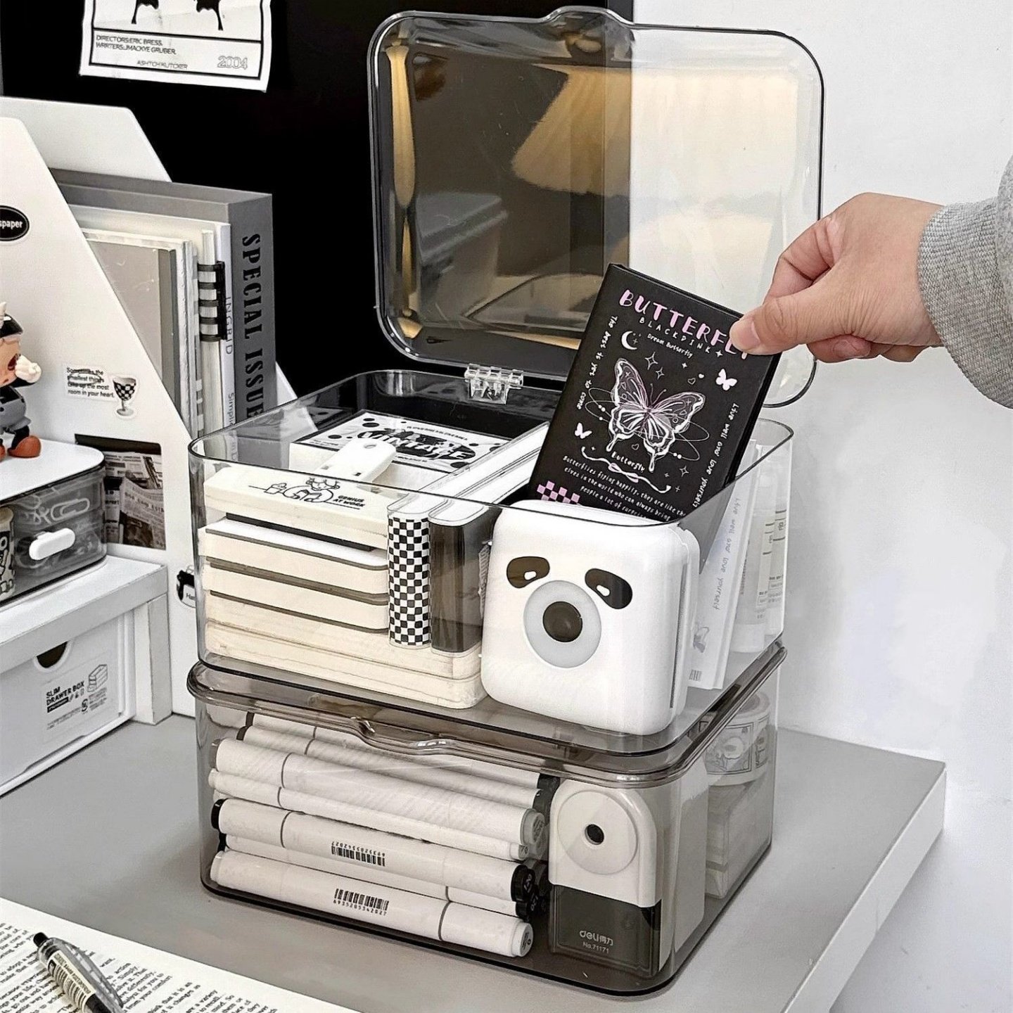 高透亚克力桌面收纳盒翻盖式防尘整理盒卧室宿舍办公室带盖收纳筐