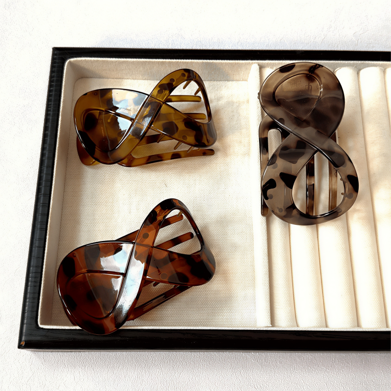 简单百搭豹纹八字形发夹后脑勺抓夹不硌头鸭嘴夹磨砂盘发发卡发饰