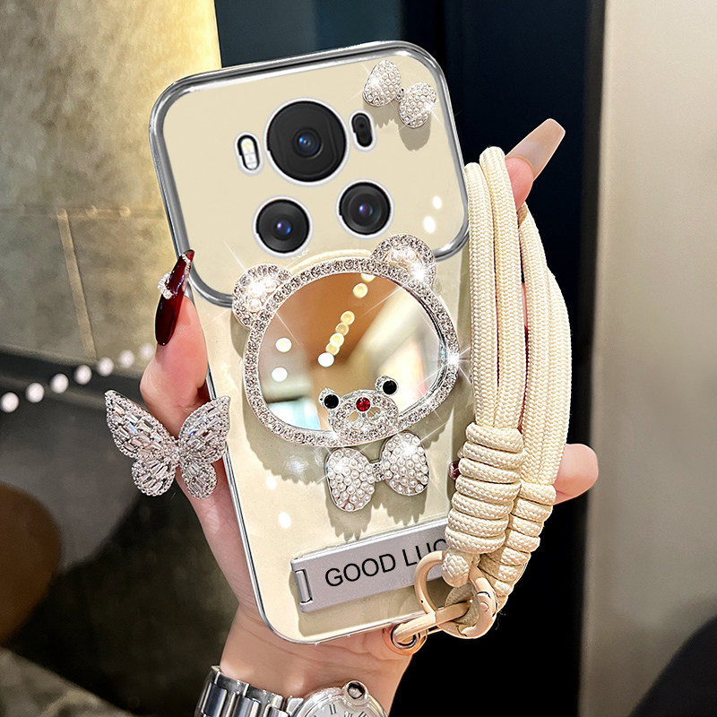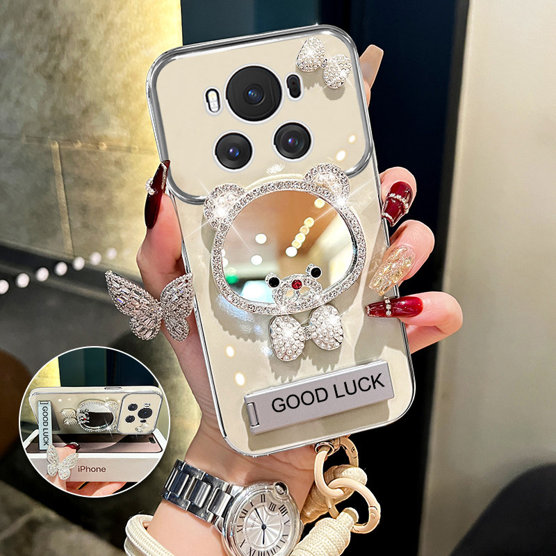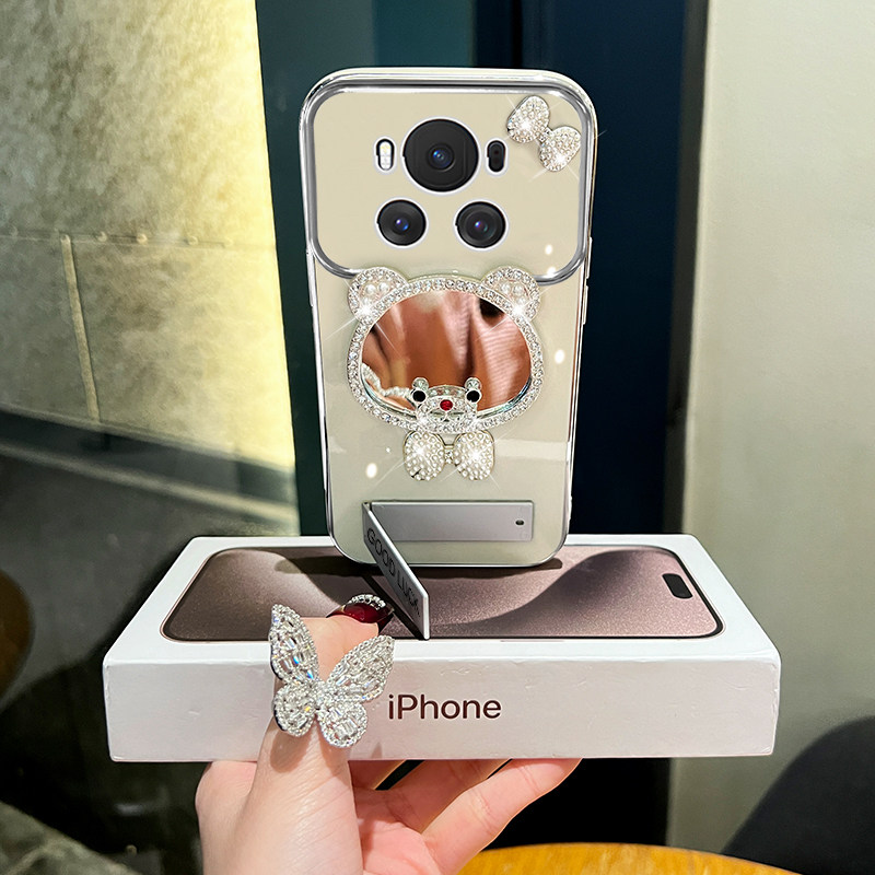 适用荣耀magic6手机壳magic6pro领结熊补妆镜大视窗创意全包防摔网红女款