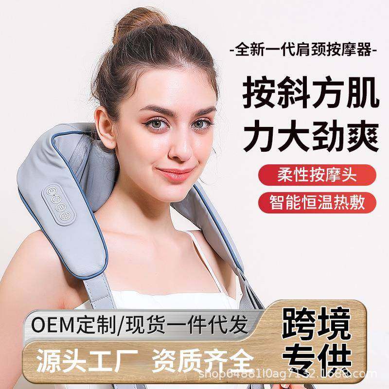 颈椎按摩器斜方肌按摩仪按压揉捏机械式疏通肌肉按摩便携充电披肩