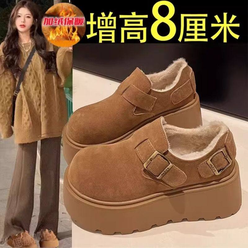 厚底勃肯鞋女鞋加绒保暖雪地靴2025新款冬季小个子乐福鞋棉鞋毛绒