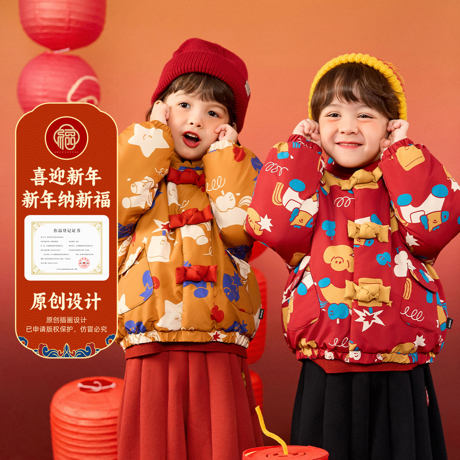 嘟嘟家儿童拜年服红色唐装喜庆棉服冬季宝宝男童冬装上衣女童棉袄