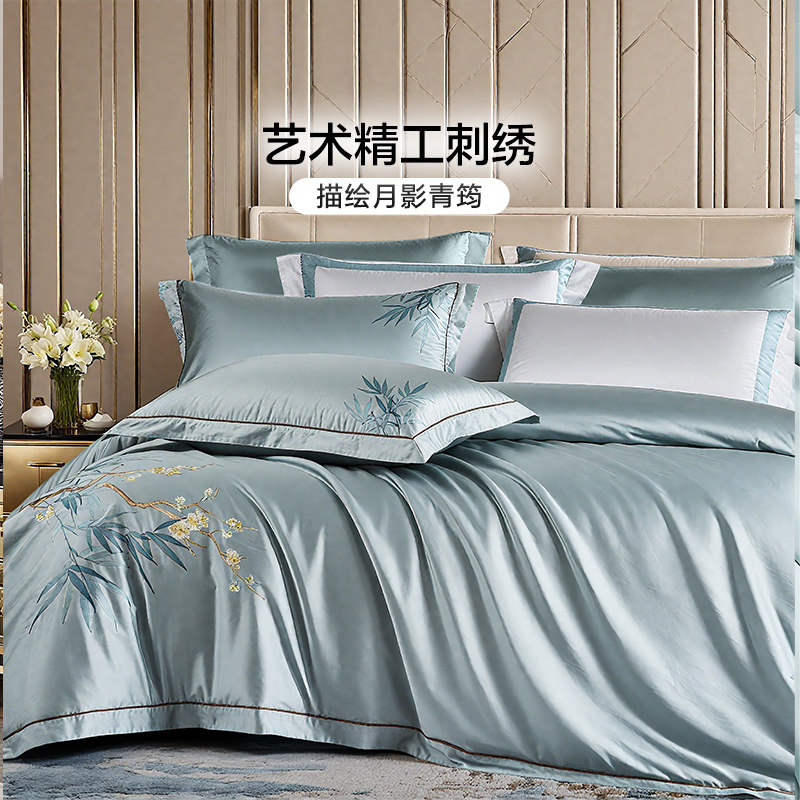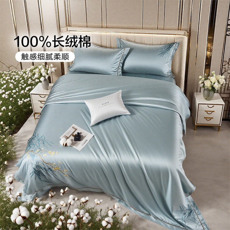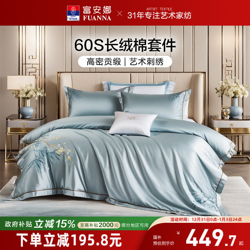 富安娜60支长绒棉四件套高级感纯棉床单被套贡缎床笠轻奢床上用品