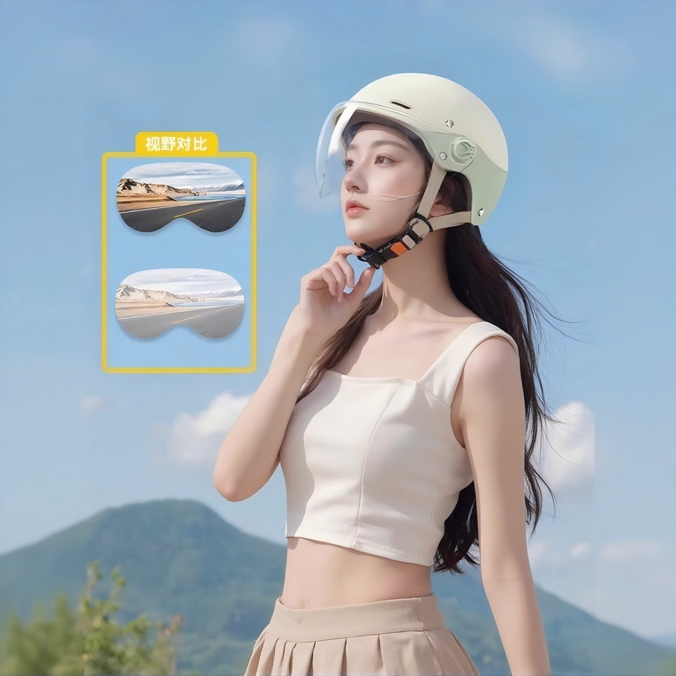新国标野马头盔电动车女夏季防晒摩托车安全帽男3c认证四季半盔