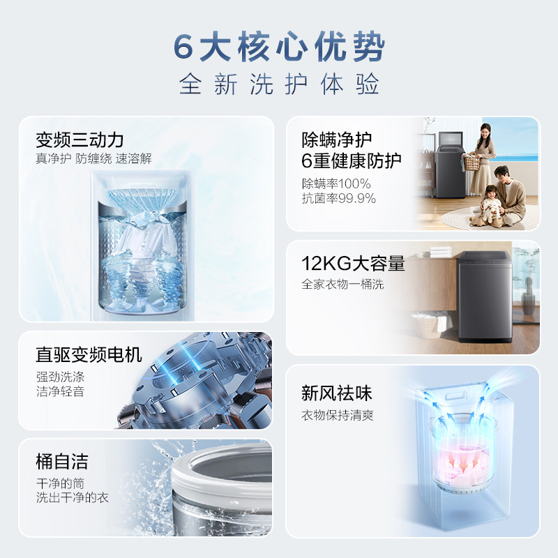 TCL 水旋风10/12KG大容量波轮洗衣机全自动家用直驱变频抗菌除螨