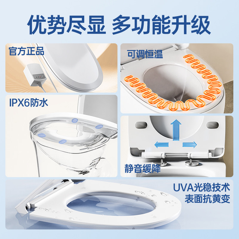家用加热马桶盖座圈通用自动电加热智能恒温U型V型坐便器盖盖板