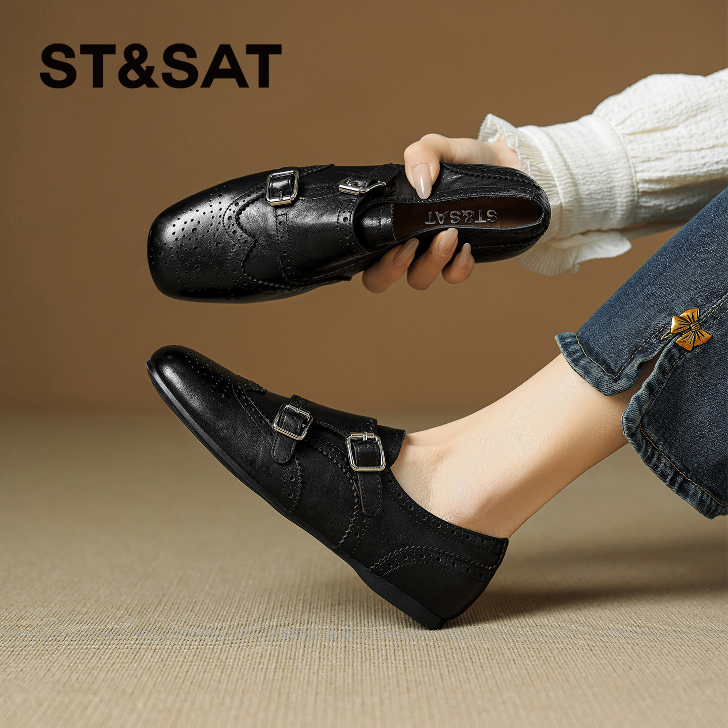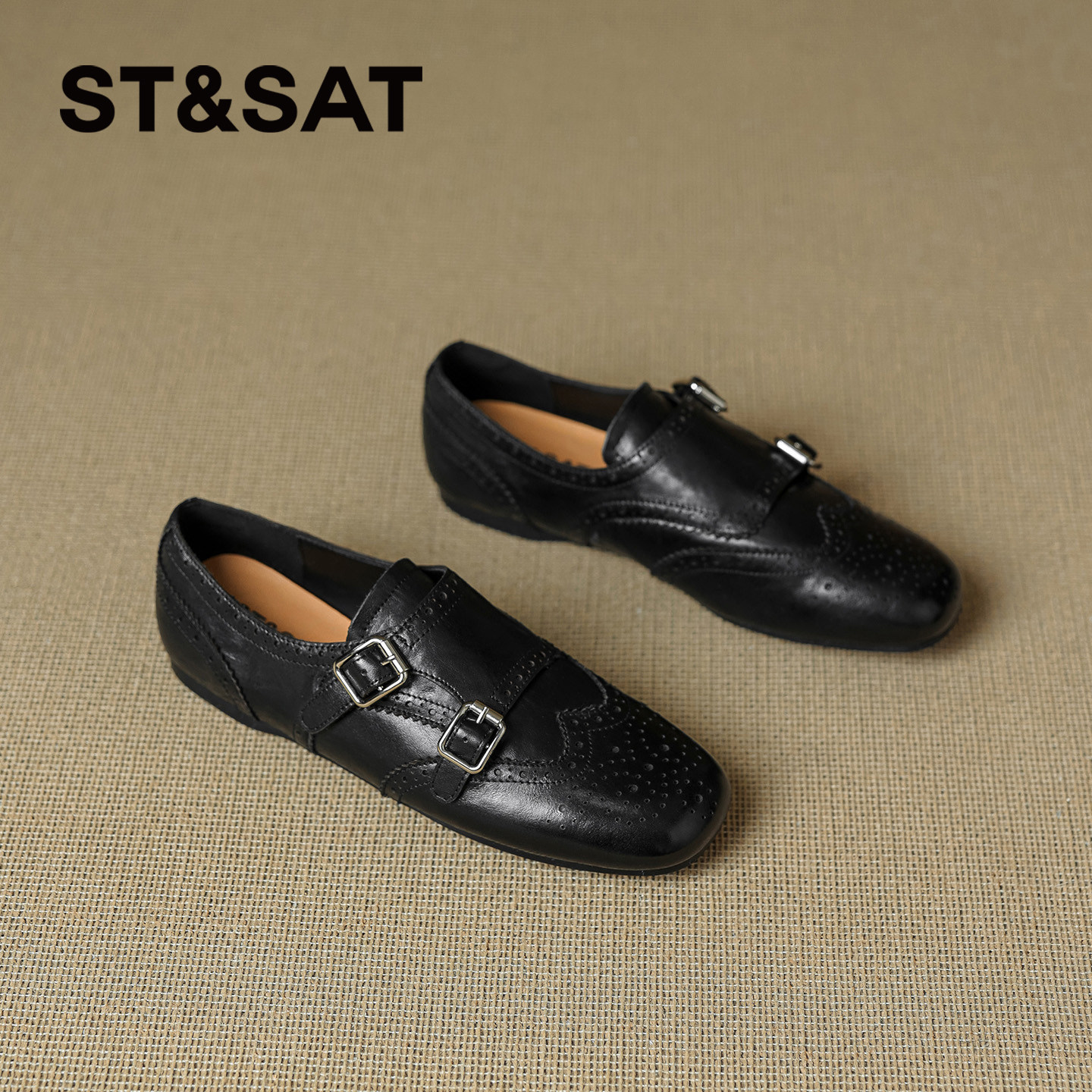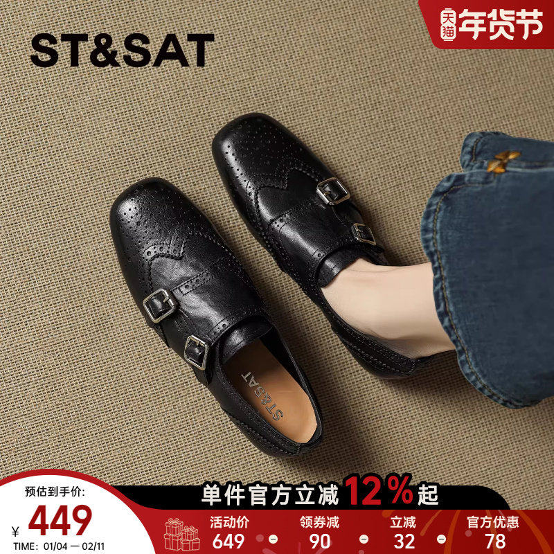 星期六2026年春季女款时尚浅口单鞋复古流行平底方头英伦风乐福鞋