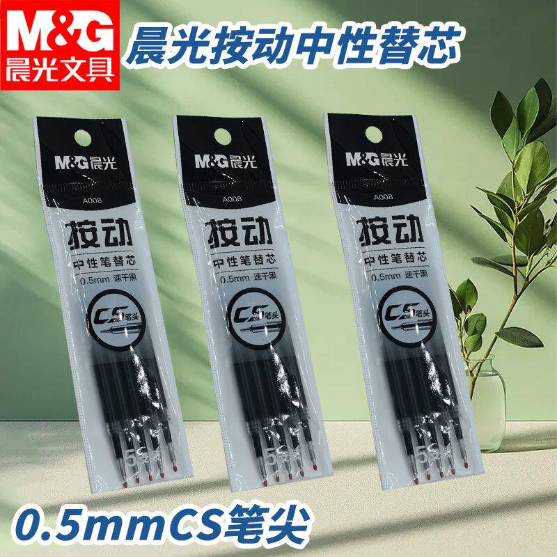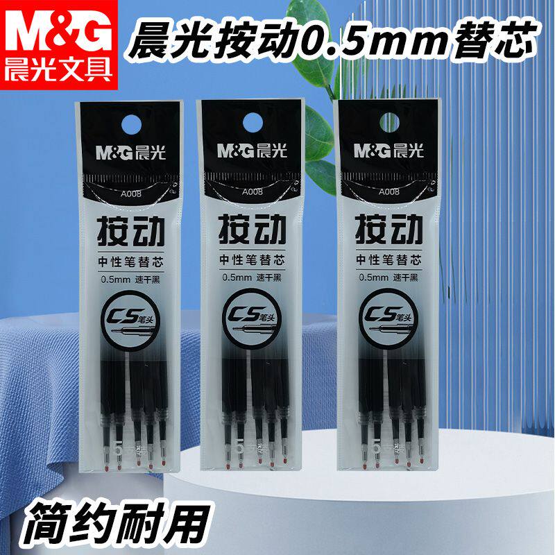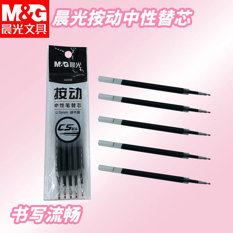 晨光按动中性笔学生书写黑0.5速干A008替换芯办公用中性笔芯写字