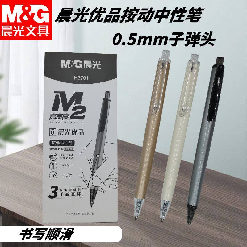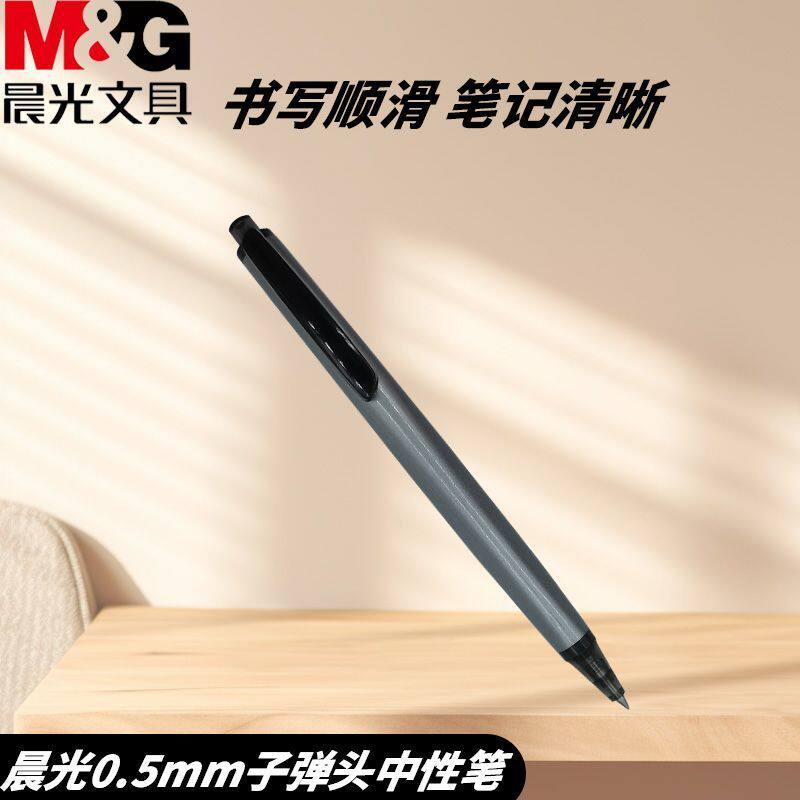 晨光优品按动中性笔高密度AGPH3701黑0.5速干金属重感学习办公笔