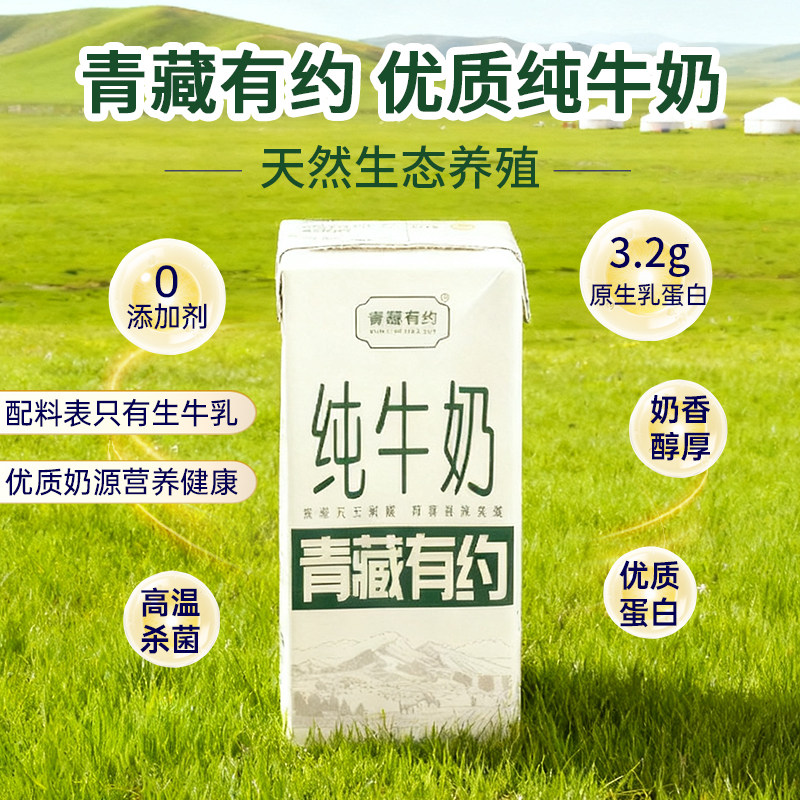 青藏有约200ml*12盒高钙辅食纯牛奶3.2g原生营养早餐高原精选每日