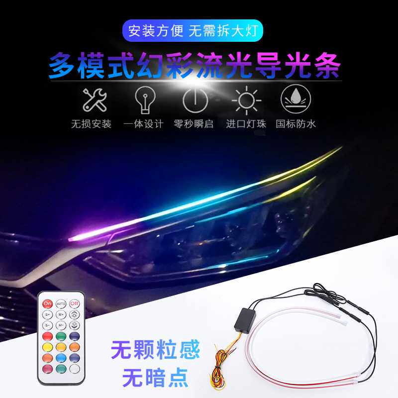 汽车幻彩超薄LED高亮导光跑马流光转向泪眼灯扫描迎宾装饰日行灯