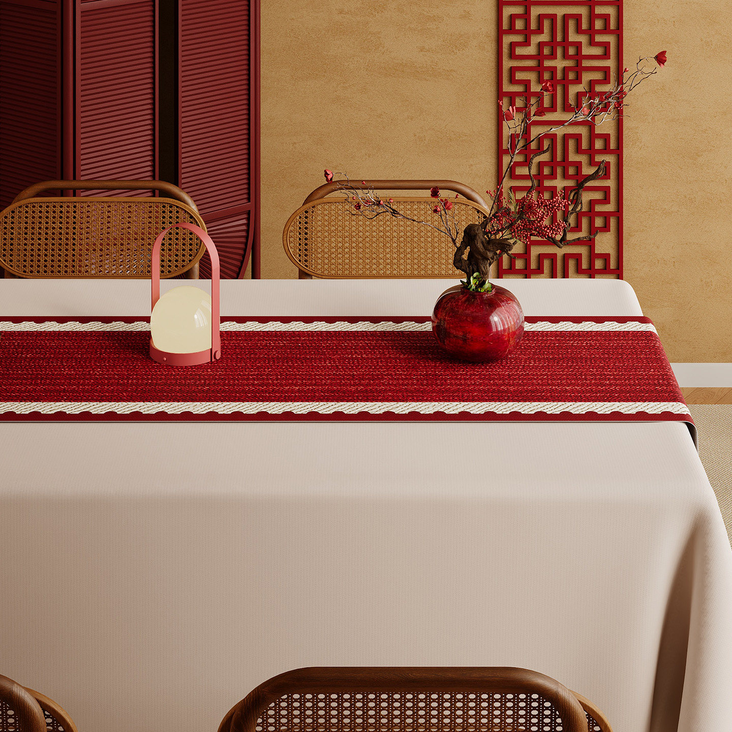 红色新年餐桌旗结婚轻奢高端新中式盖布氛围布置茶桌垫布茶几美学