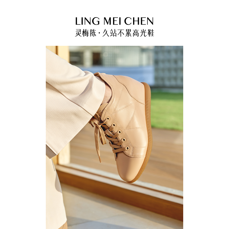 真皮~骄屿内增高芭蕾德训鞋女新款复古百搭休闲阿甘鞋厚底运动鞋