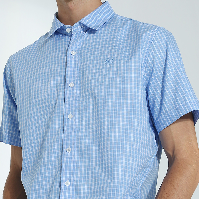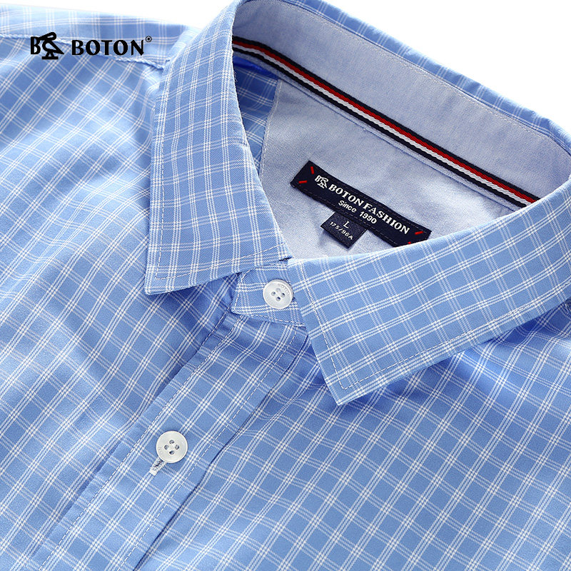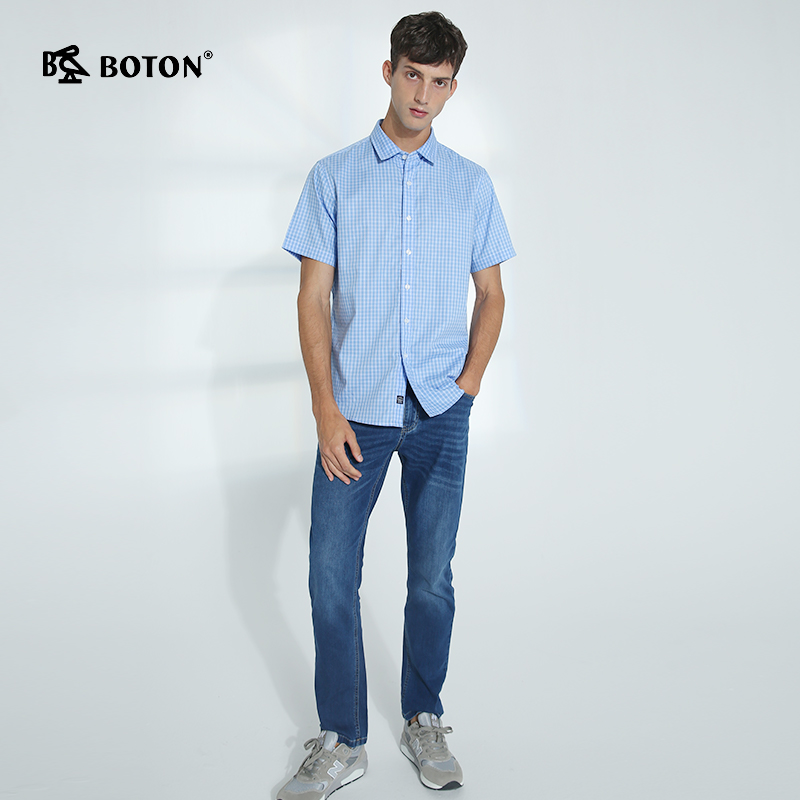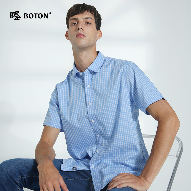 波顿男士纯棉短袖格子衬衫夏季新薄款商务休闲英伦风高端衬衣
