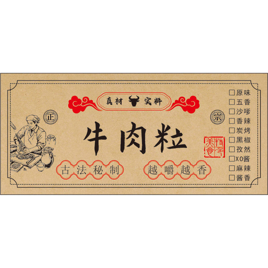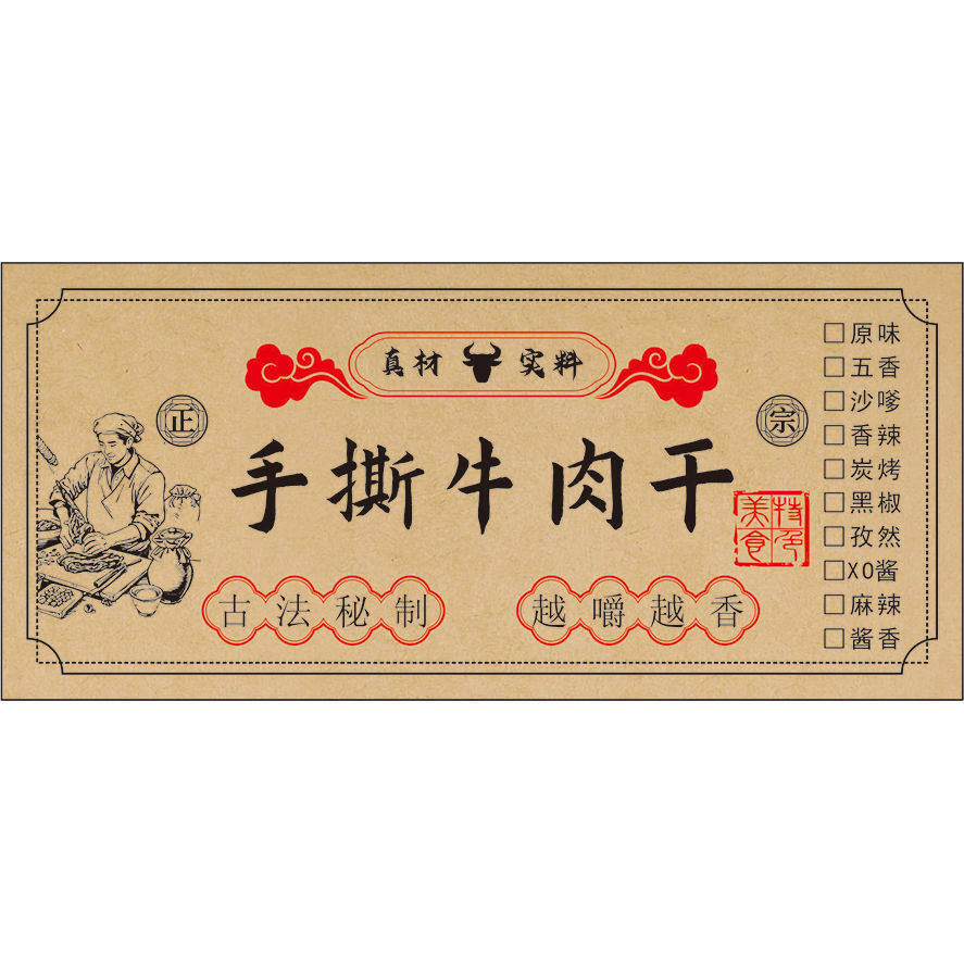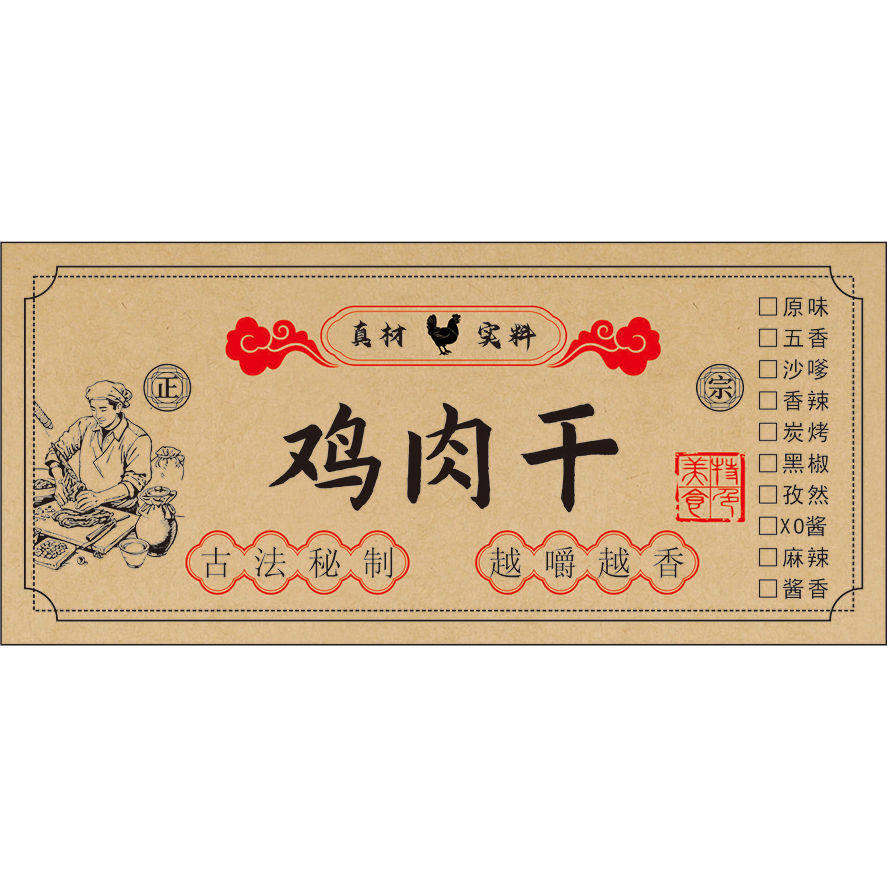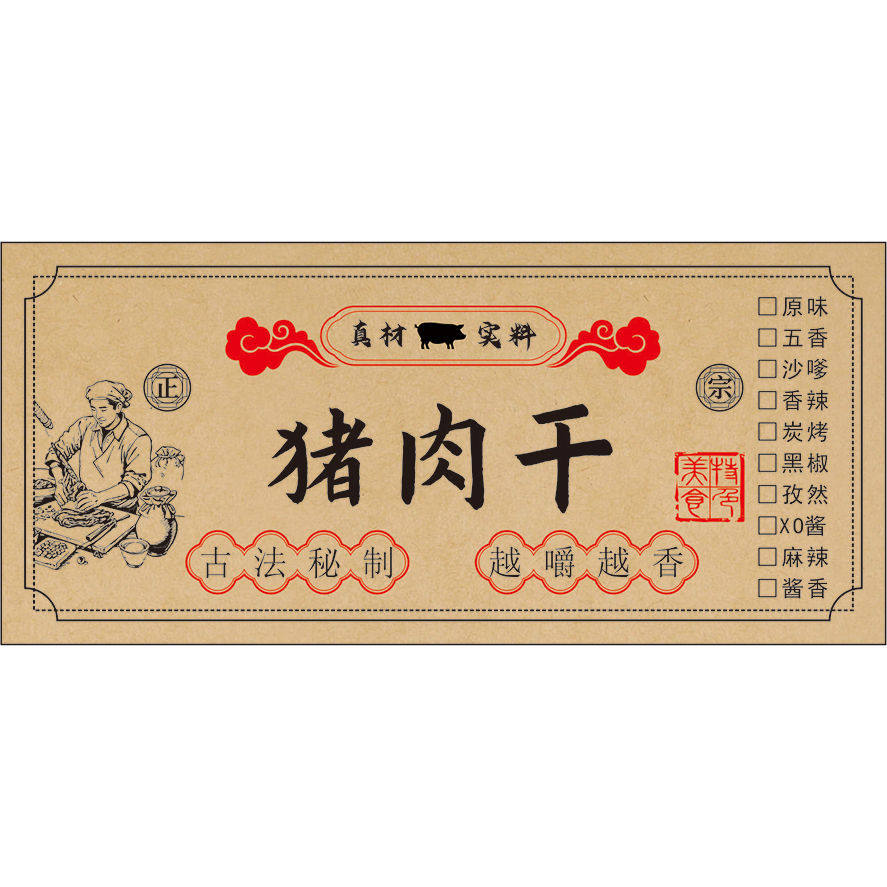 秘制肉干猪肉脯手撕牛肉鸡肉粒风干鸡肉不干胶标签贴纸彩印定制