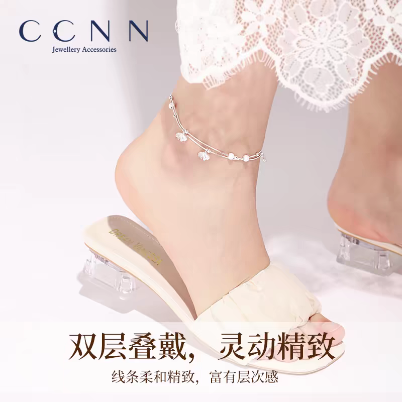 925纯银双层圆圈脚链女小众脚环2026新款性感足饰高级感精致足链