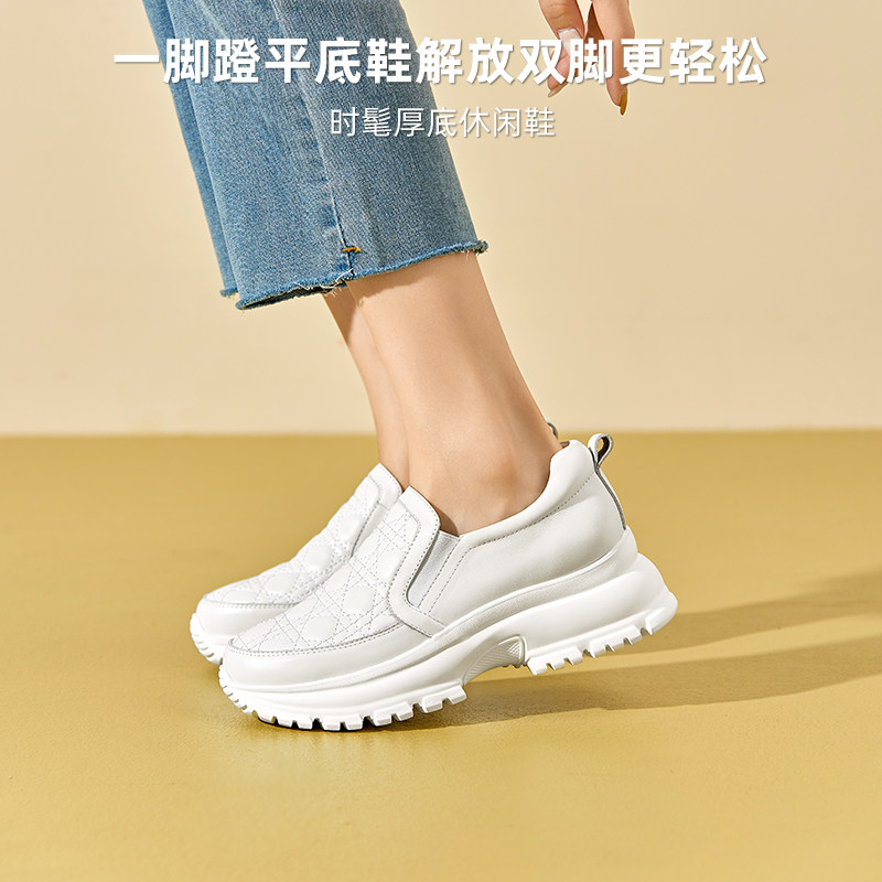 商场同款小白鞋女2025春季新款真皮松糕厚底增高一脚蹬休闲鞋女