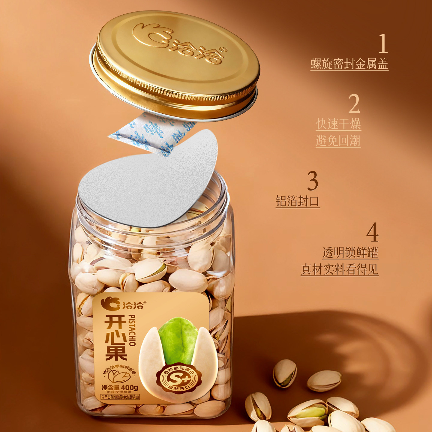洽洽罐装坚果开心果原色无漂白过年送礼零食小吃干果特产开口恰恰