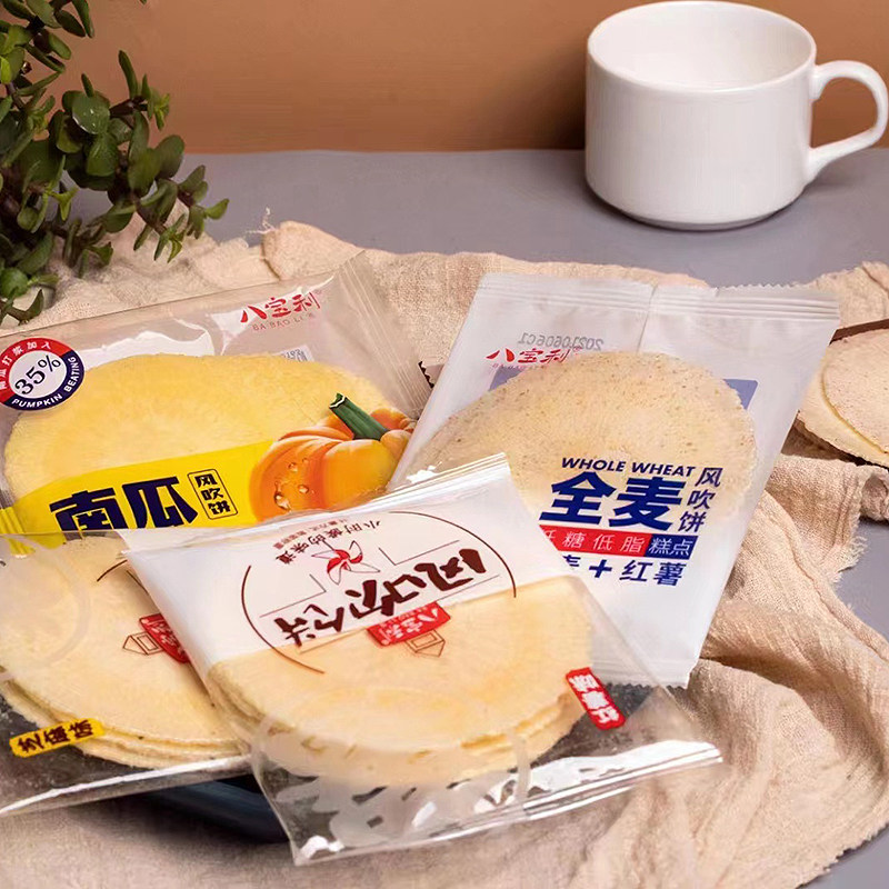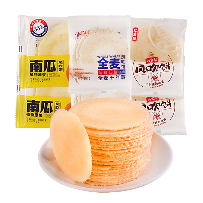 八宝利风吹饼南瓜红薯全麦味薄脆片网红休闲零食品小吃整箱