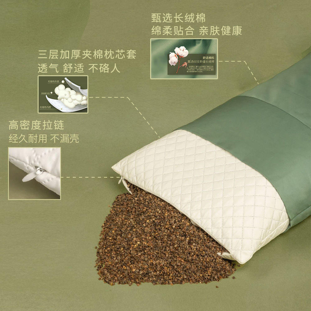 荞麦枕头护颈椎枕助睡眠专用纯棉透气成人枕芯家用一对硬低决明子