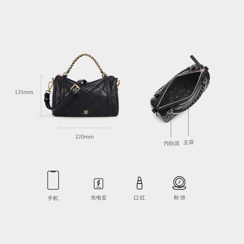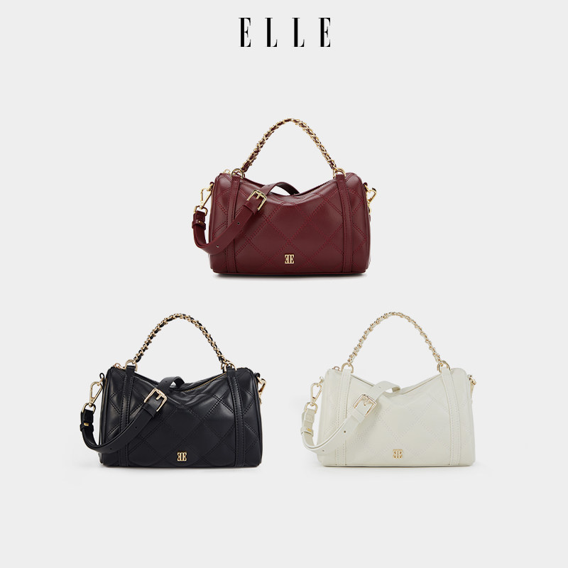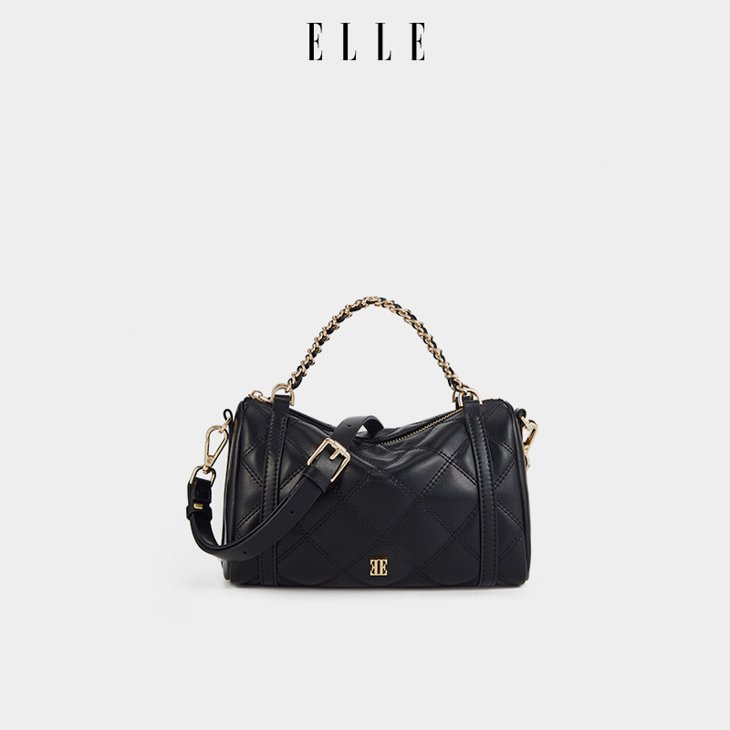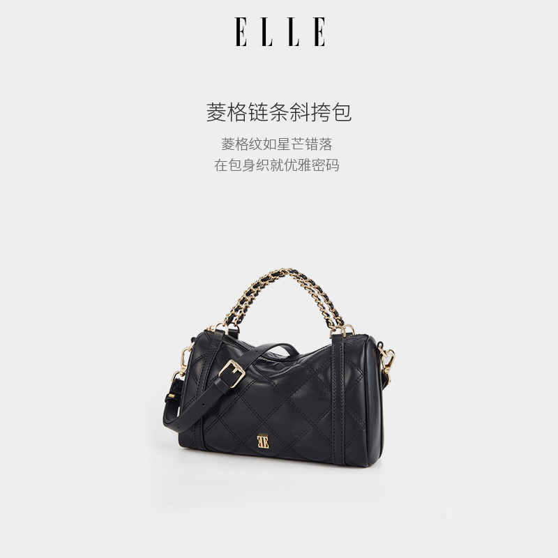 ELLE女包2026新款包包菱格链条枕头包黑色手提包小香风通勤单肩包