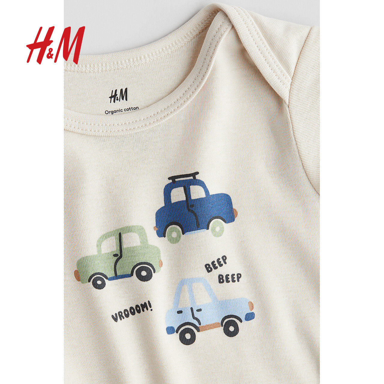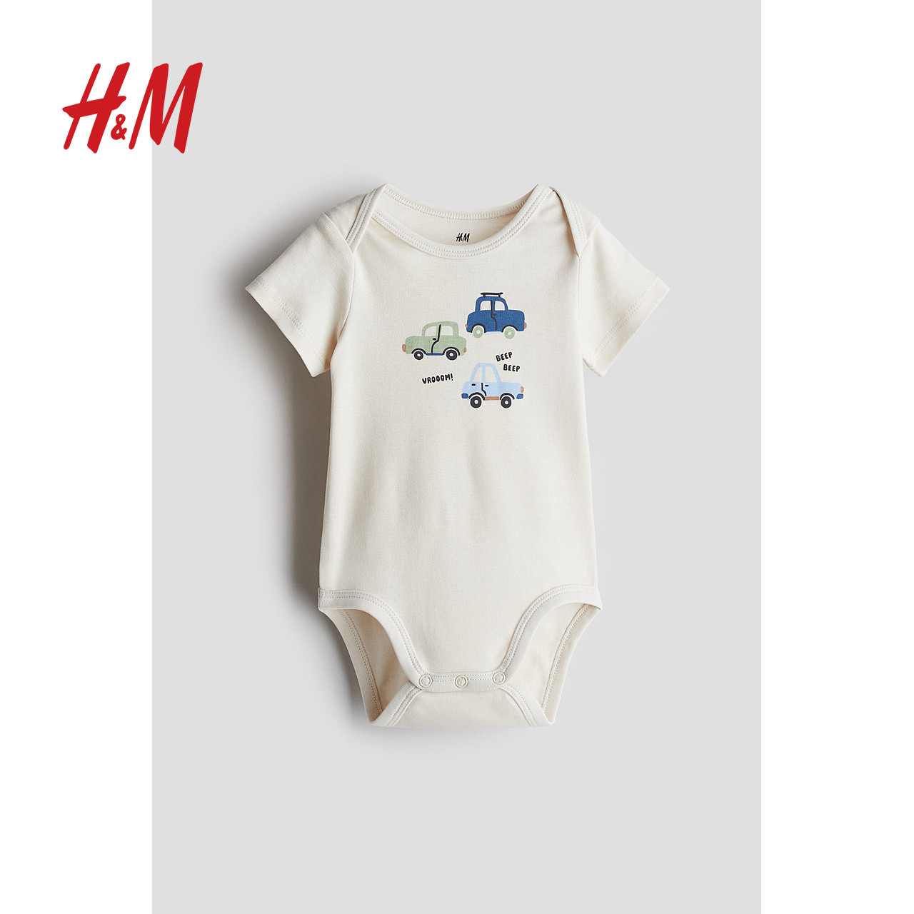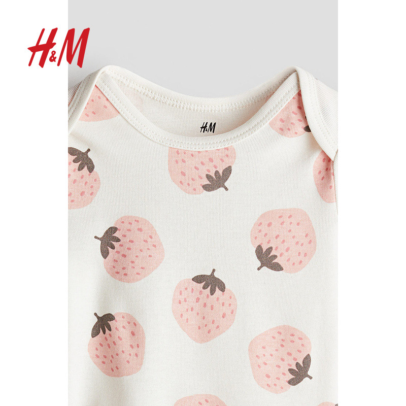 HM童装女婴连身衣25春季薄款婴儿新款印花短袖信封领哈衣1265831