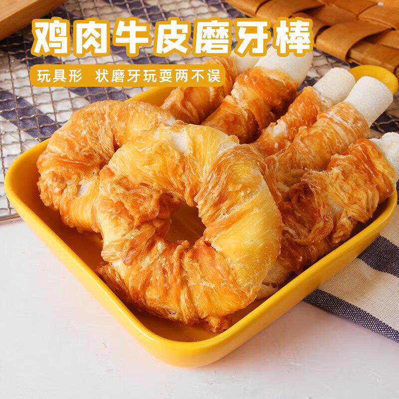 蒙贝鸡肉牛皮圈磨牙棒宠物零食狗狗零食鸡肉狗磨牙棒训练零食 鸡