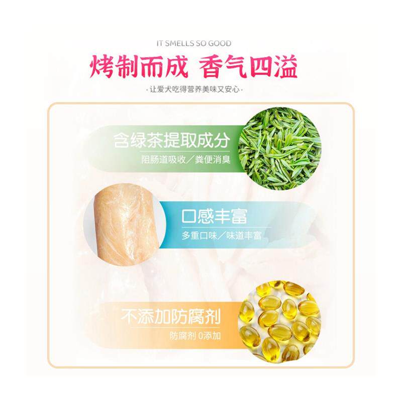 伊纳宝狗零食烤鸡胸肉泰迪金毛宠物食品训练肉干12支整包犬用 奶