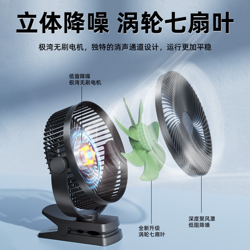 柠萌夹式风扇学生宿舍床头静音电风扇usb充电桌面工位台扇婴儿车载夹子小风扇户外便携超长续航摇头循环电扇