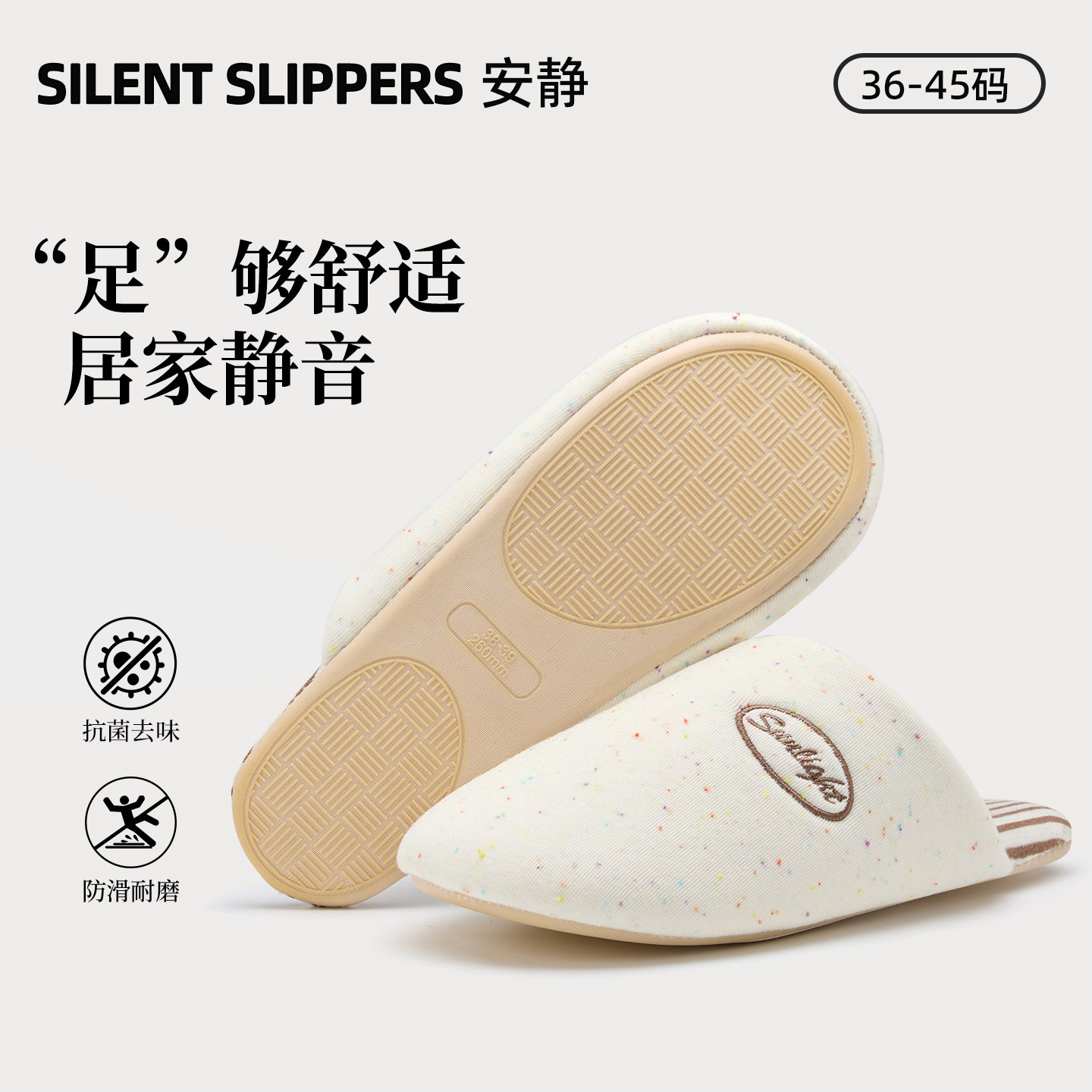 洁丽雅静音拖鞋女款秋冬季居家室内舒适抗菌防滑四季地板棉拖鞋男