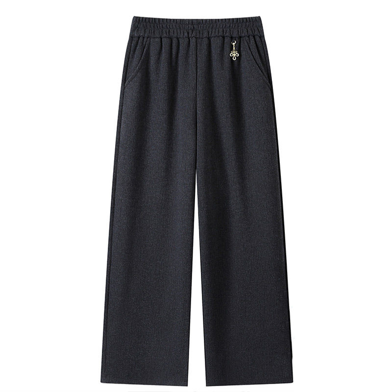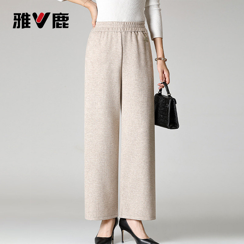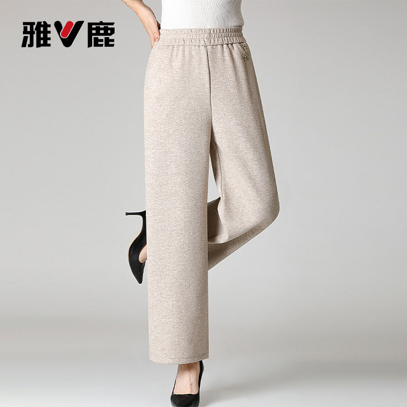 雅鹿胖妈妈秋冬装休闲加绒直筒裤中老年女加肥大码宽松高腰阔腿裤