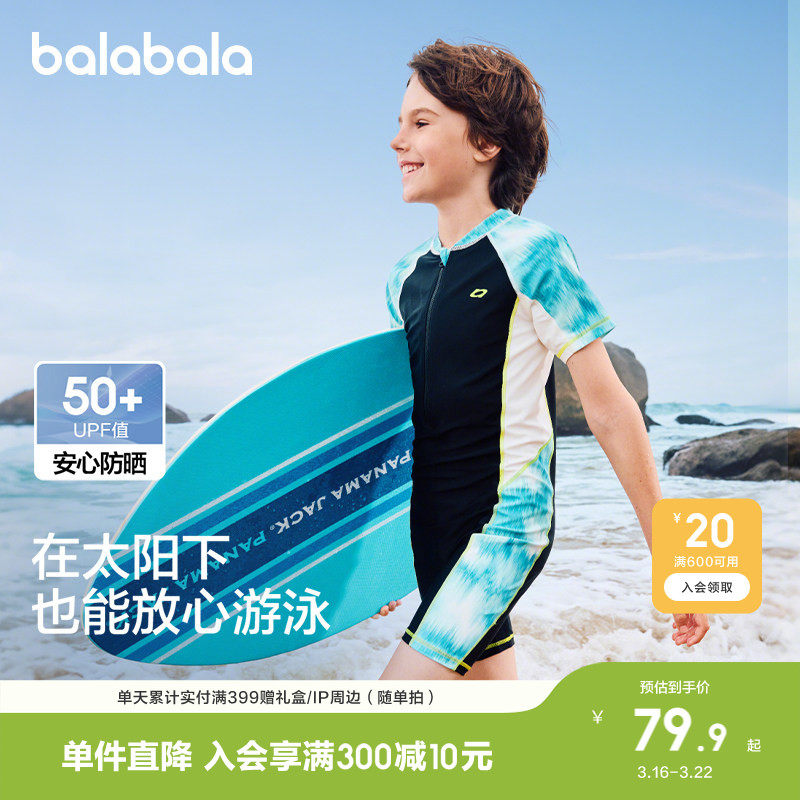巴拉巴拉儿童泳衣男童女童海边泳池防晒速干连体分体泳装泡温泉潮