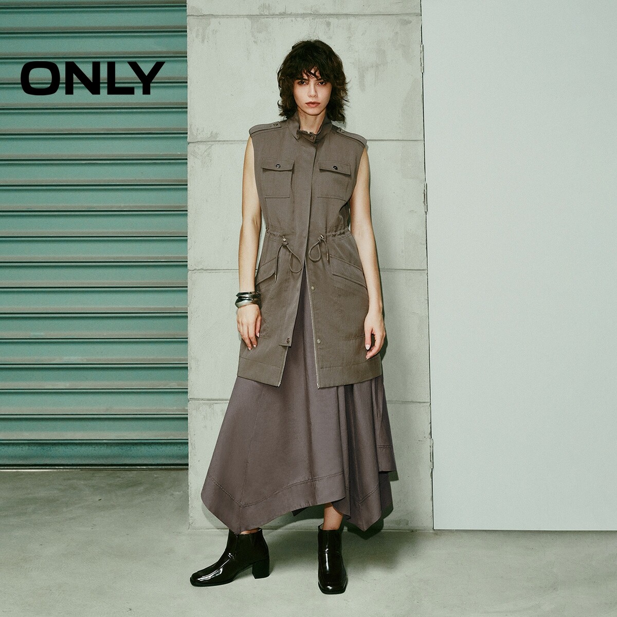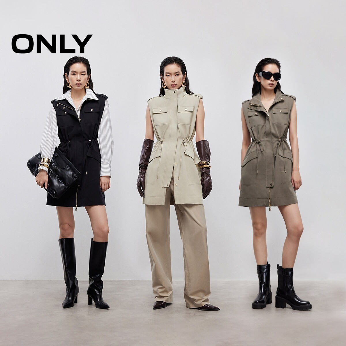 ONLY2026春季新款工装风口袋收腰抽绳率性无袖裙子短裙连衣裙女