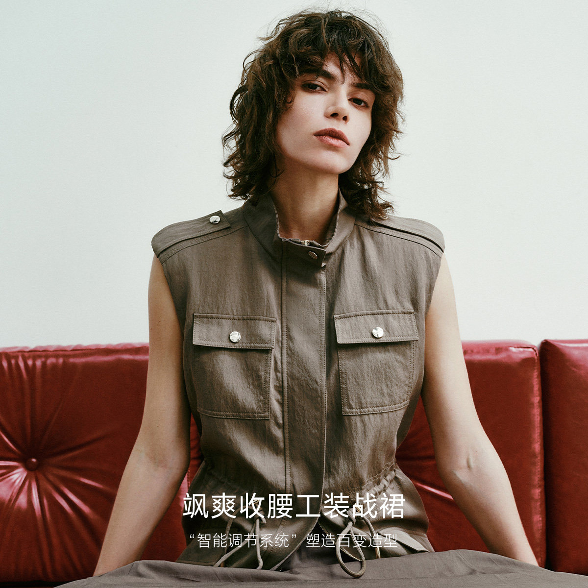 工装连衣裙 率性小立领设计 可调节抽绳收腰