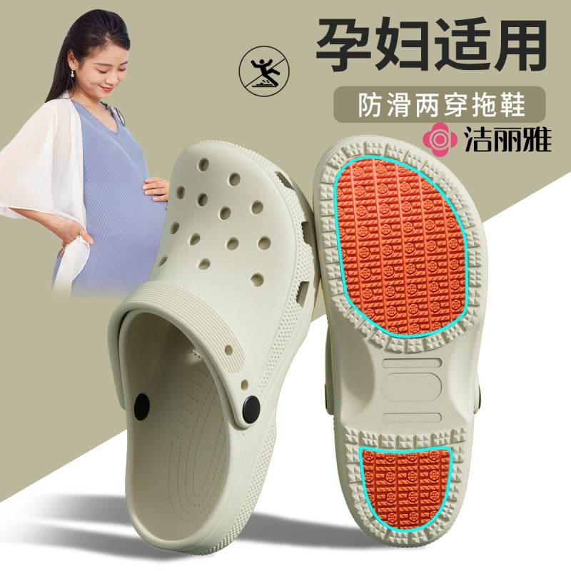 洁丽雅孕妇防滑拖鞋女2025新款夏季月子外穿沙滩鞋eva洞洞鞋男士