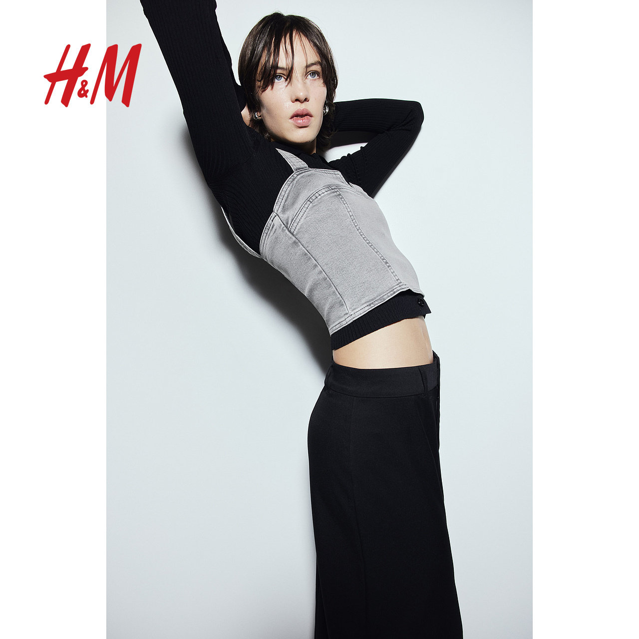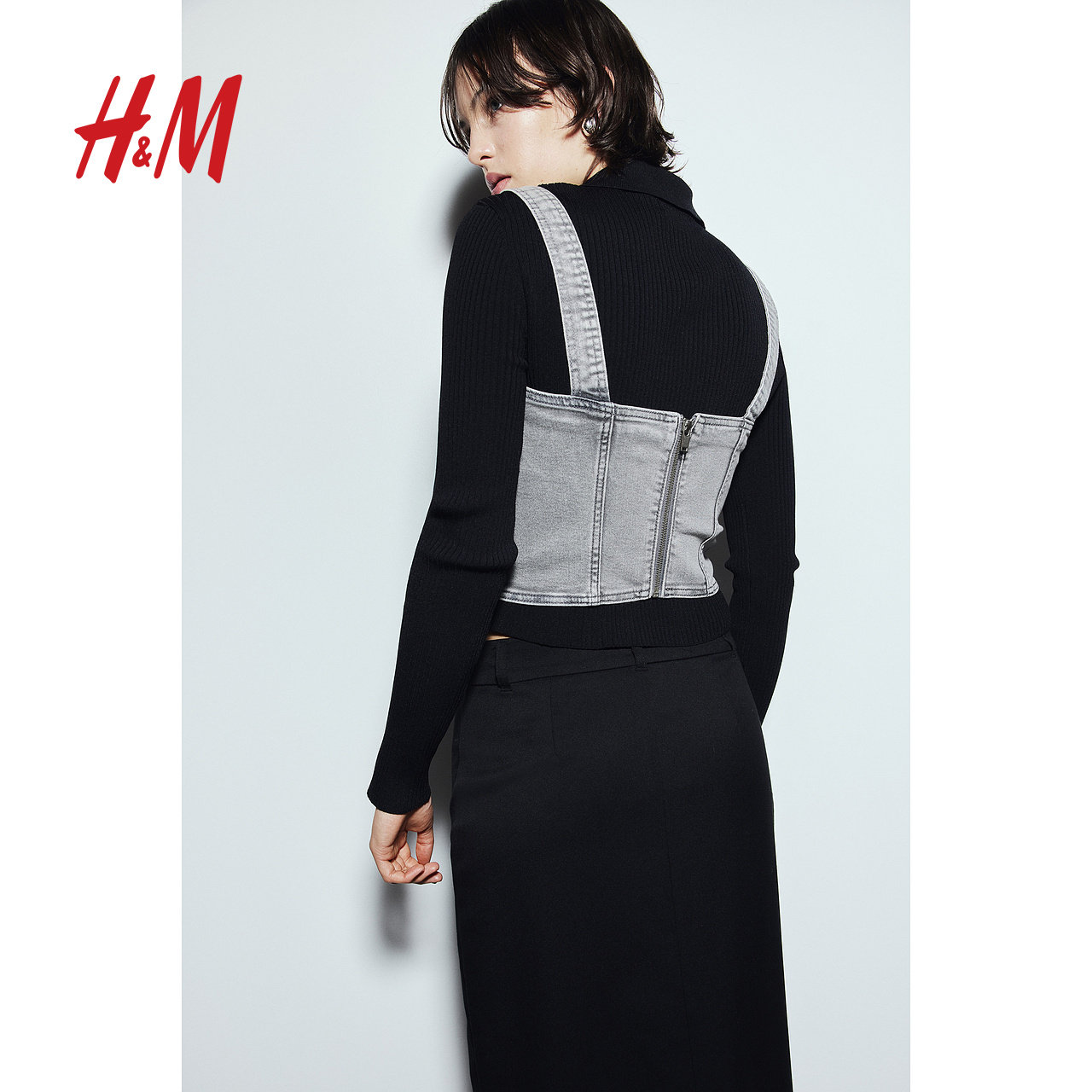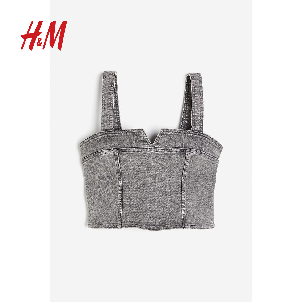 HM女装背心春季时尚方领修身微弹牛仔塑身上衣1212093
