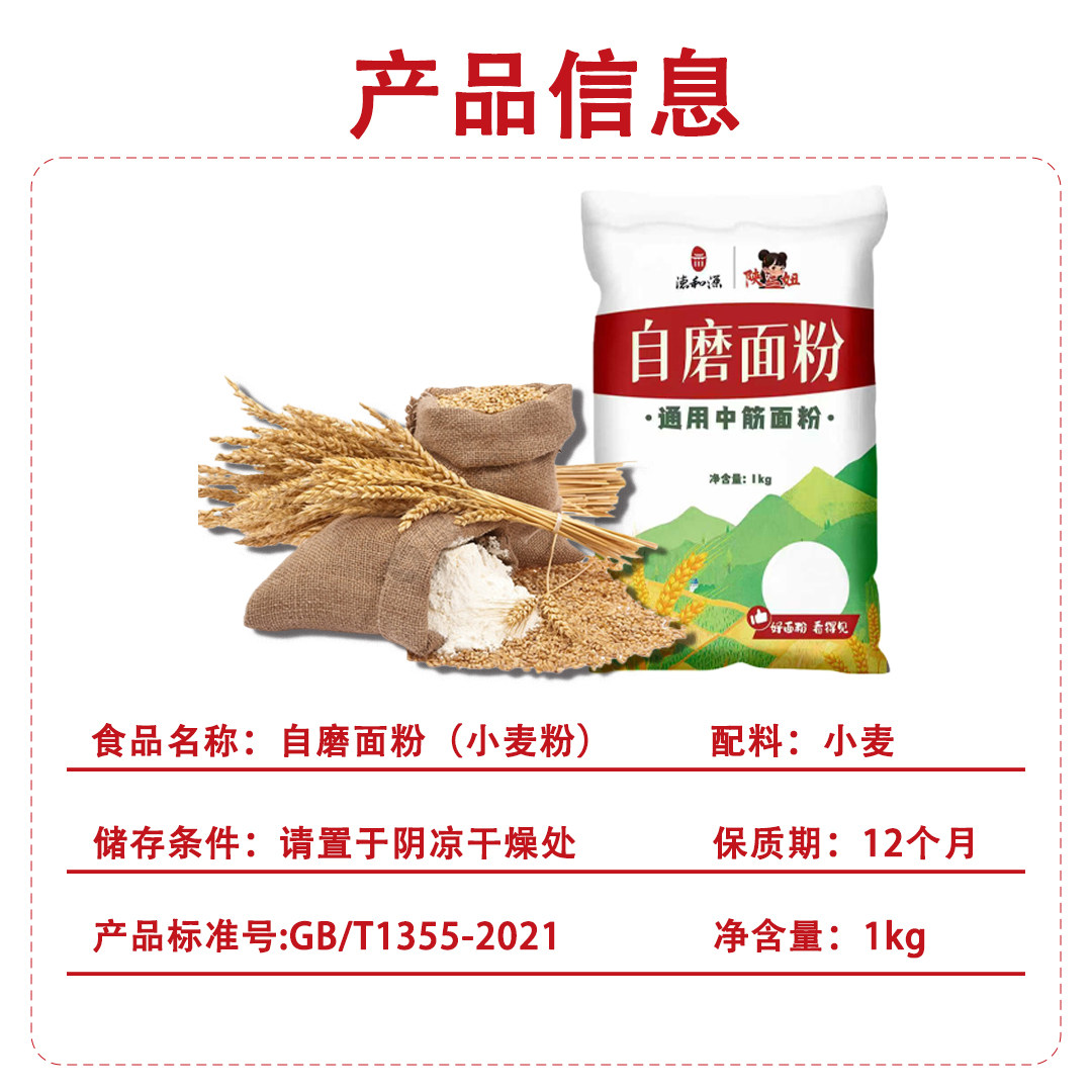 2斤自磨面粉家庭小麦面粉1kg家用中筋无添加面粉包子饺子馒头面条