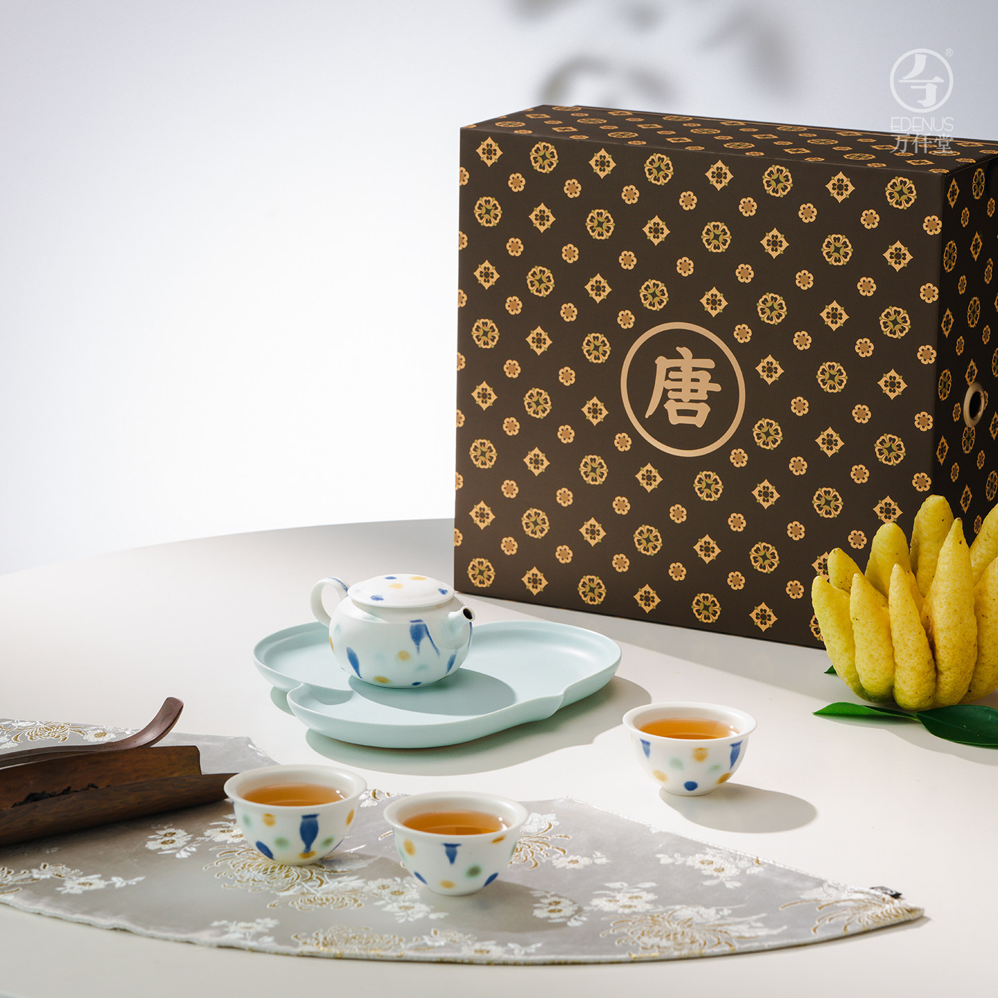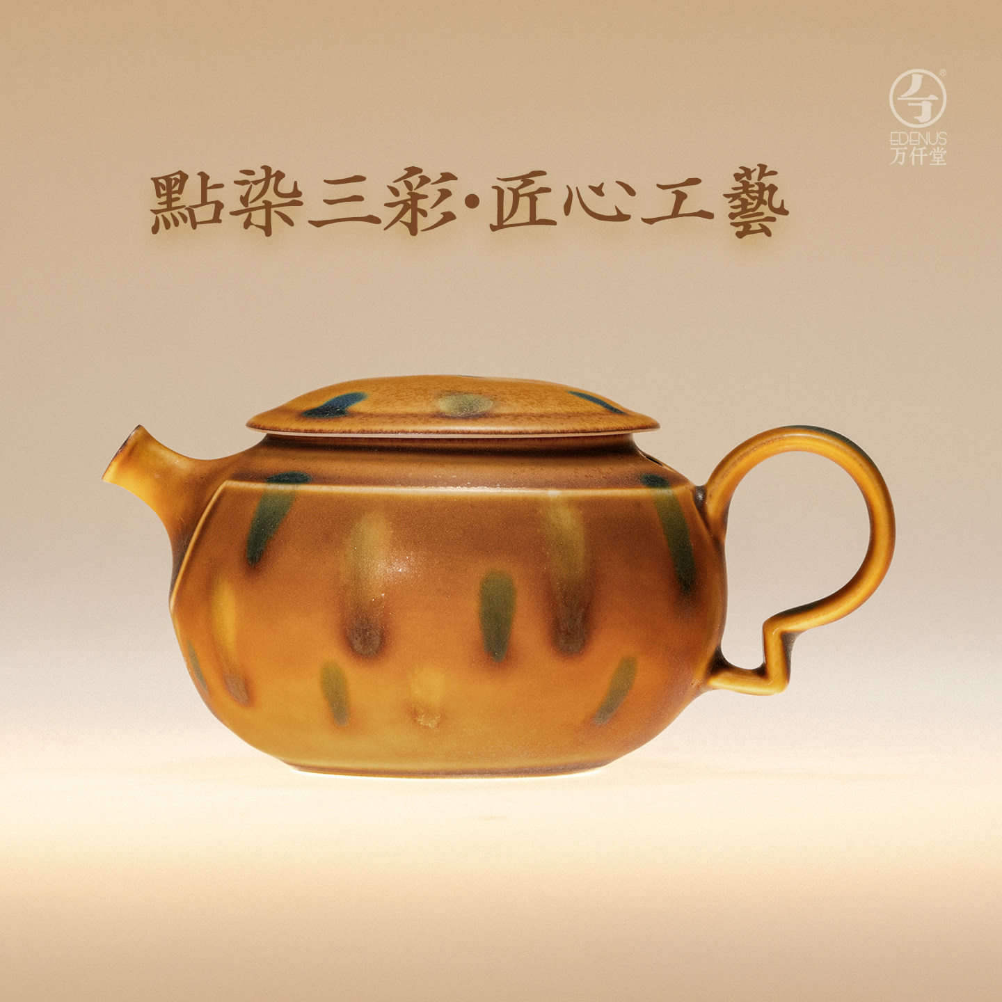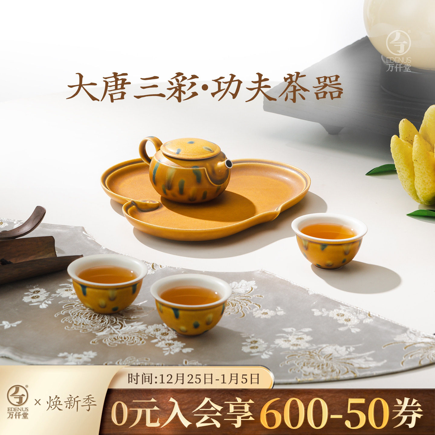 万仟堂联名陕历博大唐三彩功夫茶器陶瓷茶具套装茶杯泡茶壶带茶盘