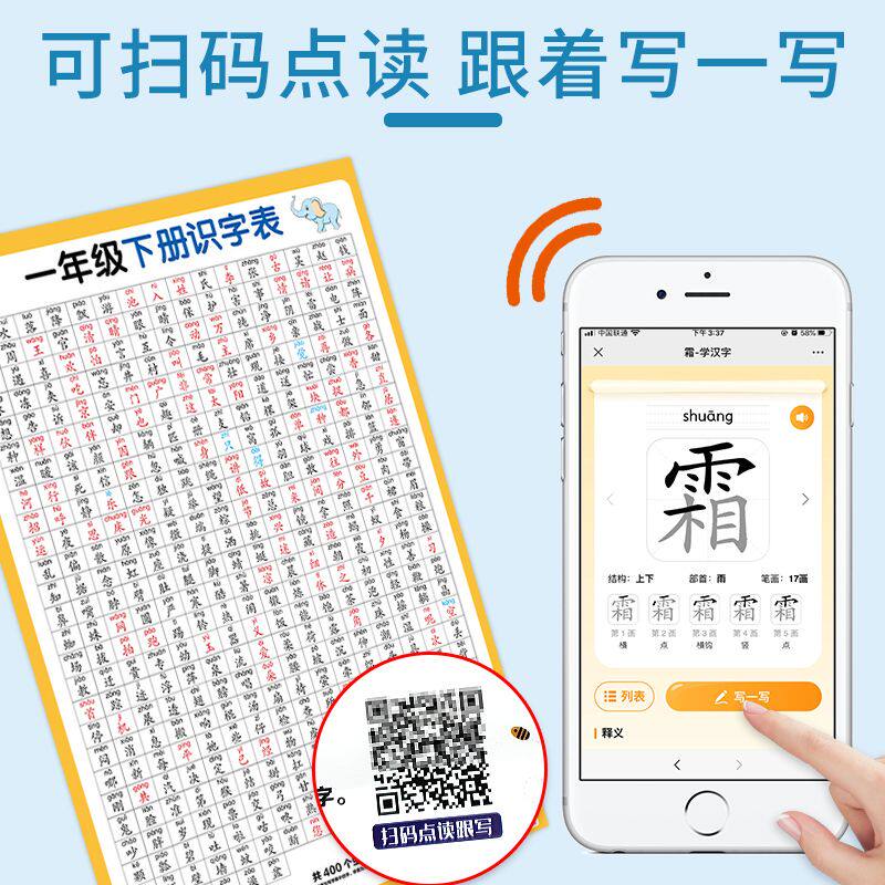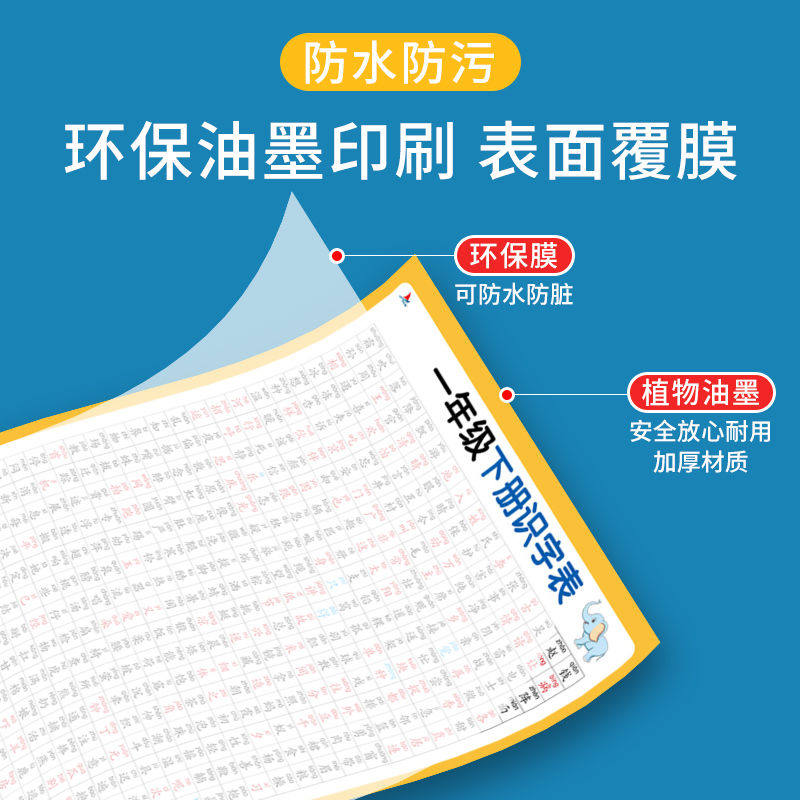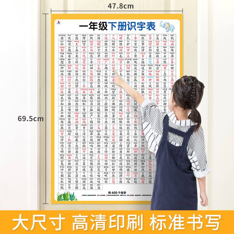 小学生识字挂图一年级上下册注音汉字启蒙认知大尺寸墙贴防水防油一年级语文上册下册认字生字识字表挂图卡片人教版识字书拼音墙贴