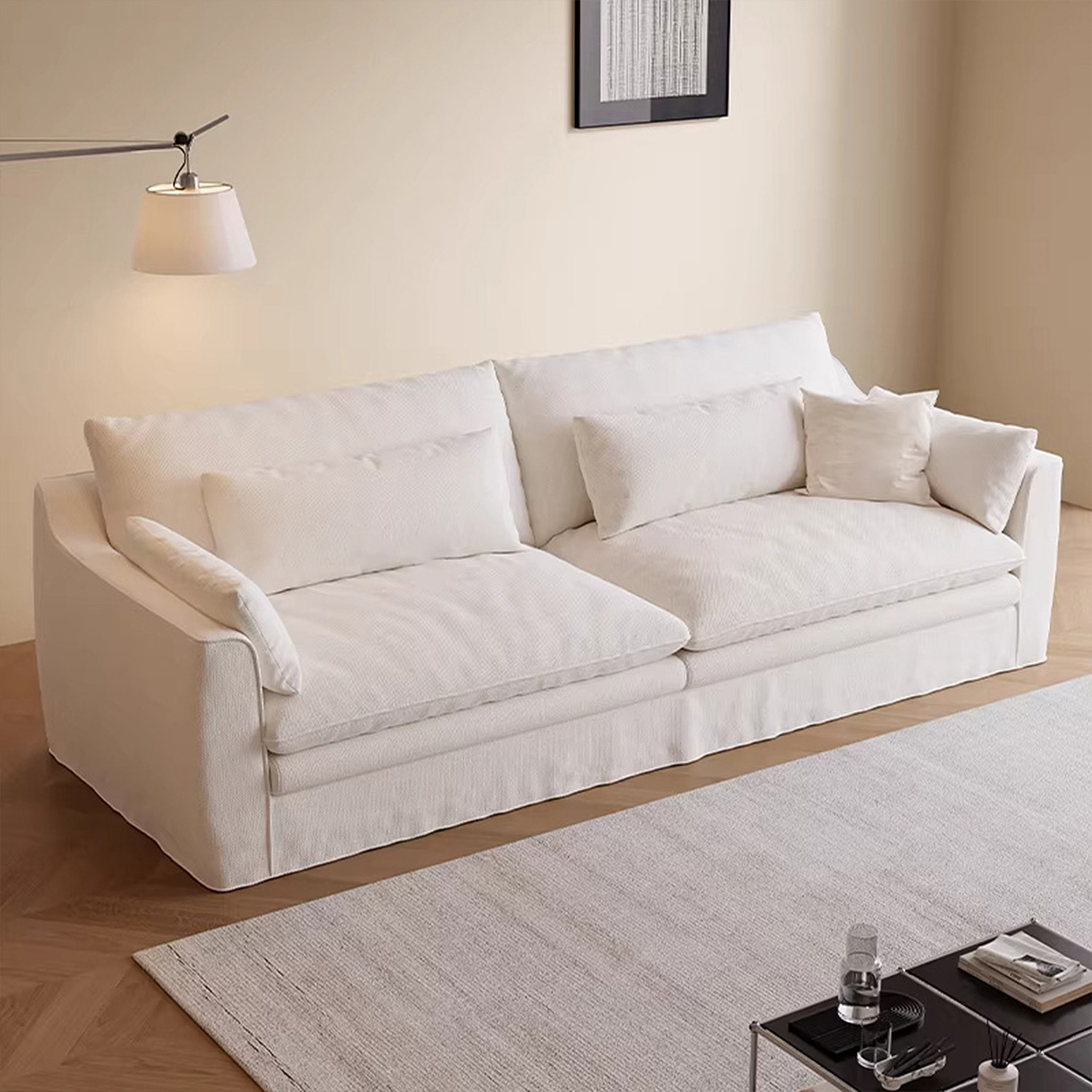 奶油风布艺沙发客厅2025新款小户型家用可拆洗三人位直排云朵沙发