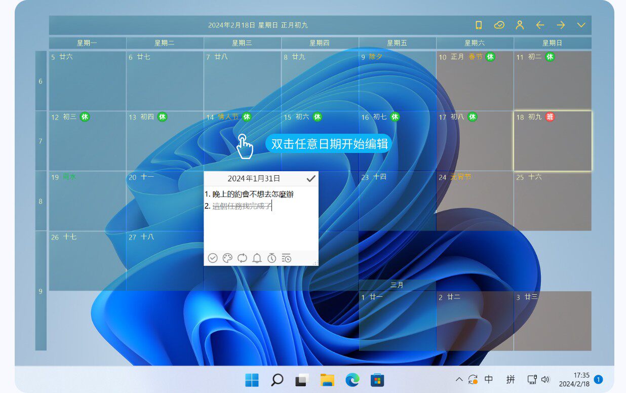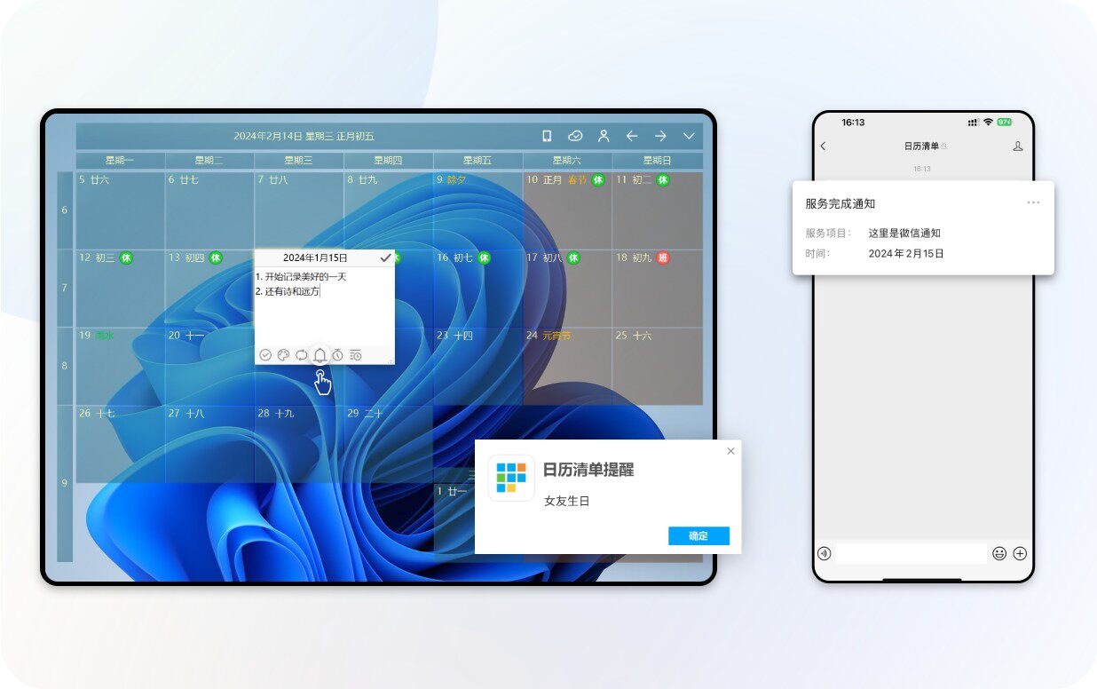 电脑桌面日历软件日程提醒记事备忘便签清单任务待办通知优化工具