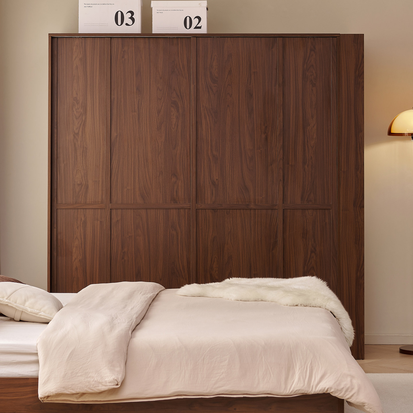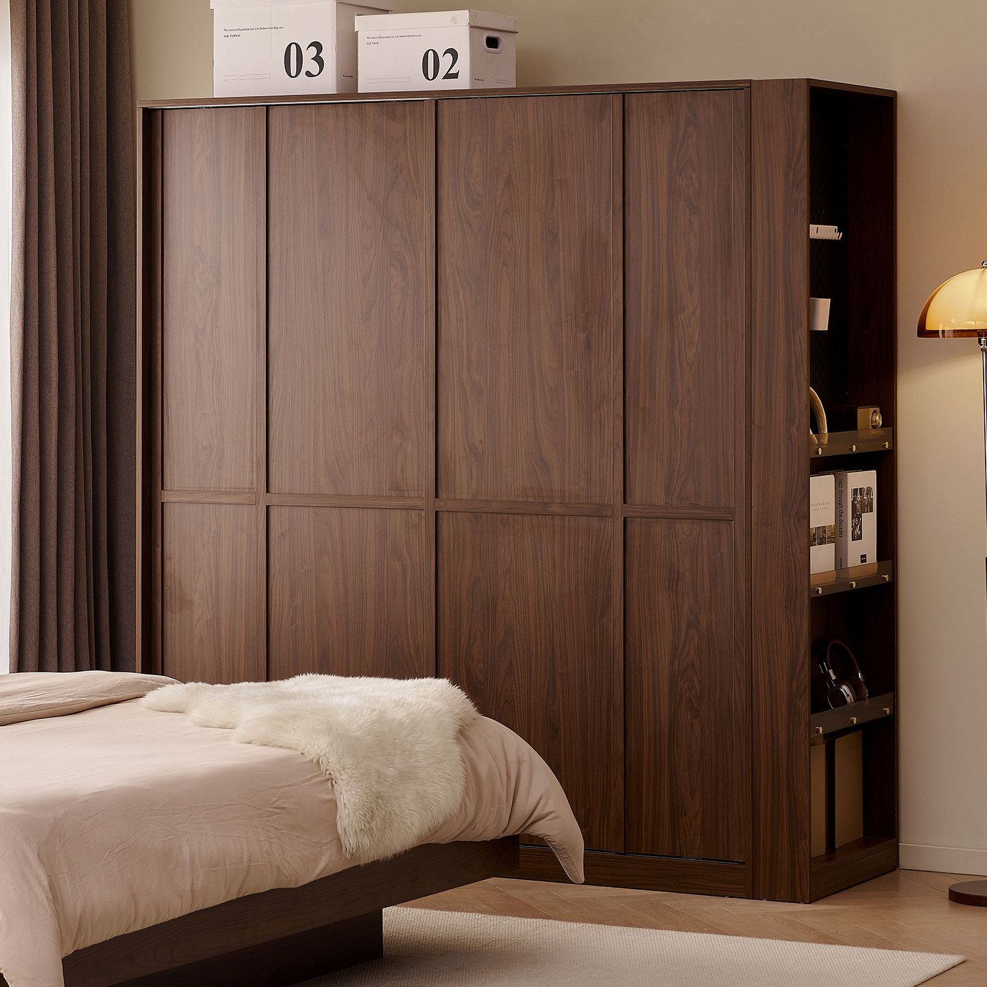 木兜家具格序衣柜胡桃色卧室小户型实木骨骼线推拉门中古风大衣橱