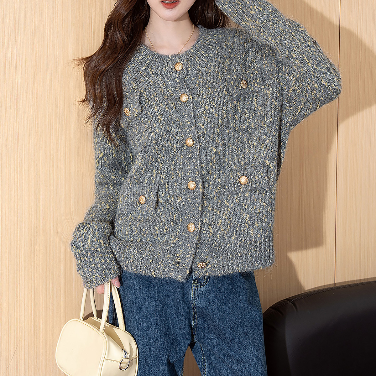 唐狮秋冬小香风新型纱线针织开衫女春秋外套高级感百搭毛衣女tu