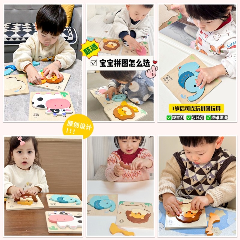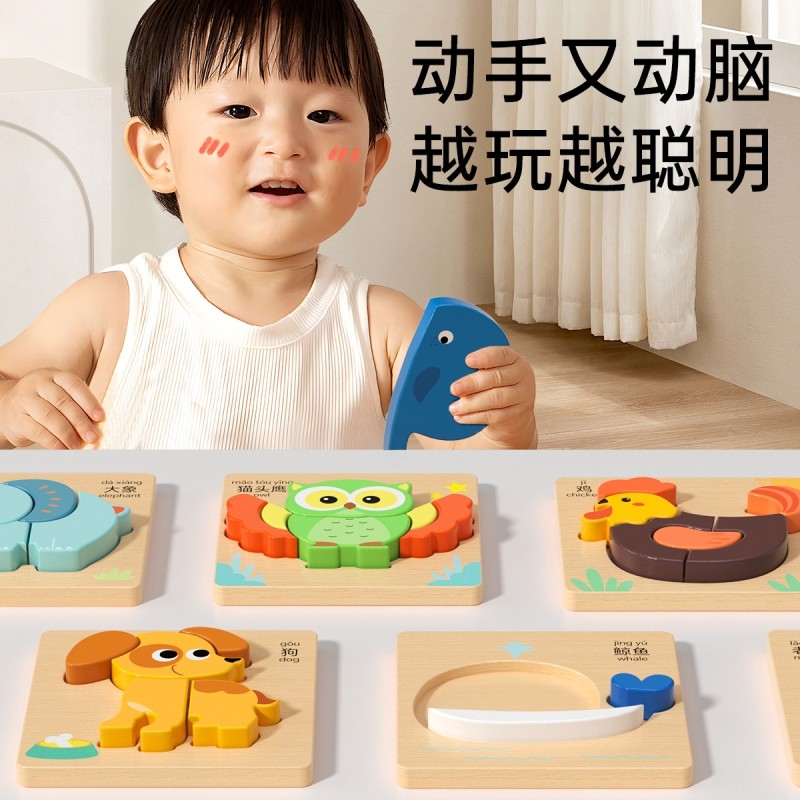 宝宝益智拼图2岁幼儿童1岁半到3动物平图0男孩女早教积木木质玩具
