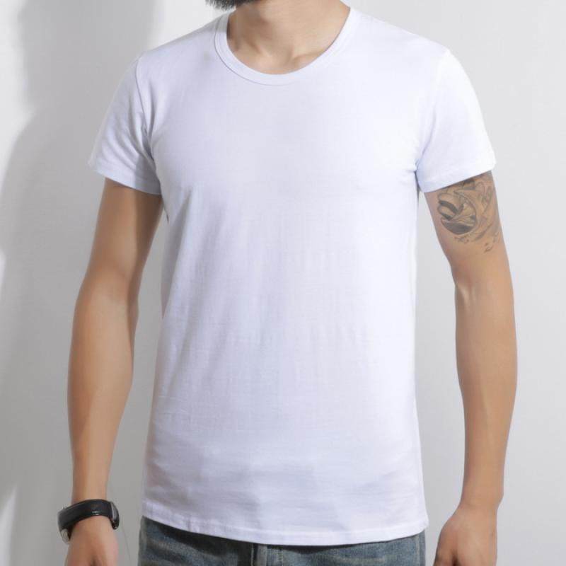 莱卡棉大小码男士圆V领t恤夏季透气时尚白色短袖打底半袖衫薄款