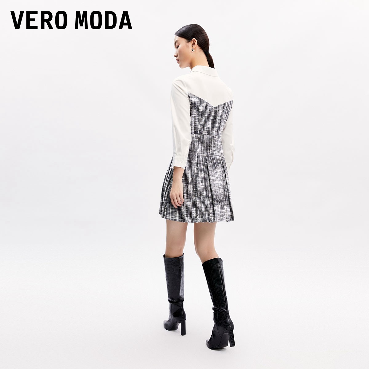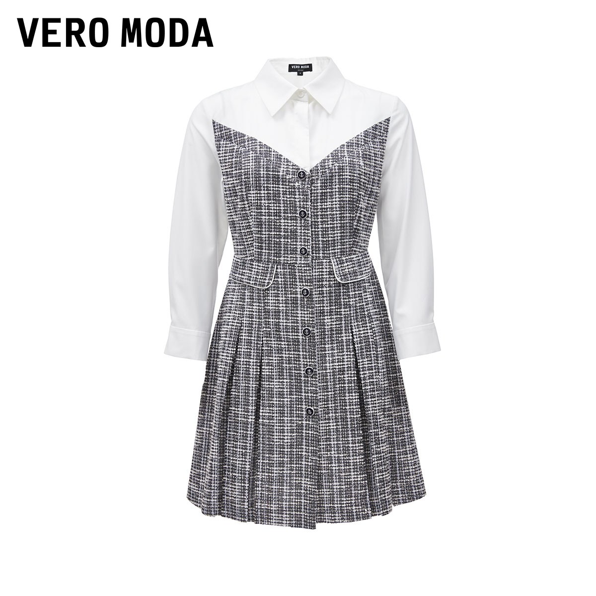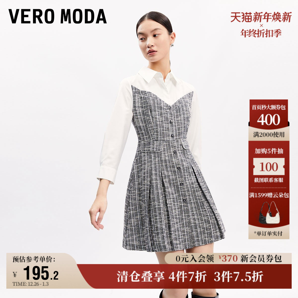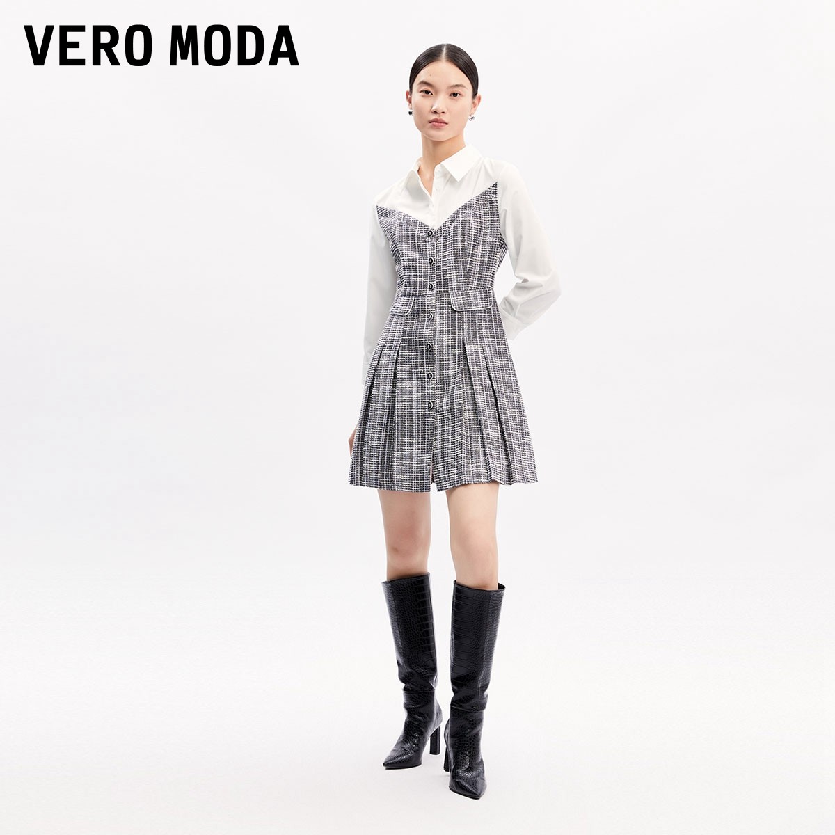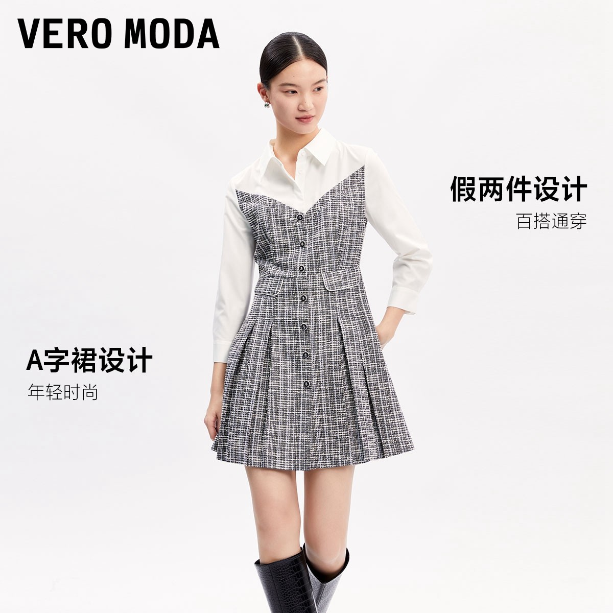 Vero Moda奥莱连衣裙子秋冬清仓假两件A字摆收腰短裙优雅气质女