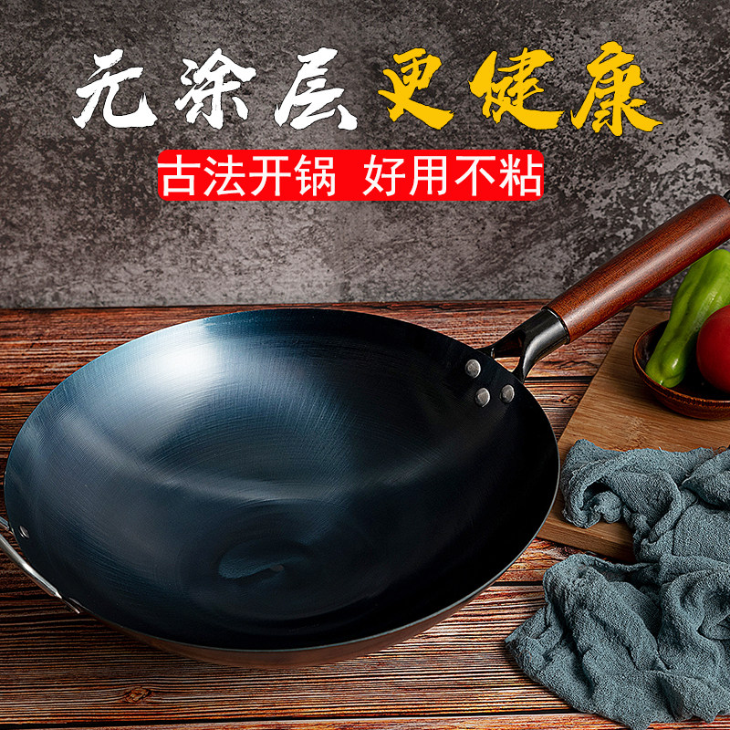铁锅官方旗舰炒菜锅老式炒锅铁锅家用不粘锅无涂层燃气灶适用