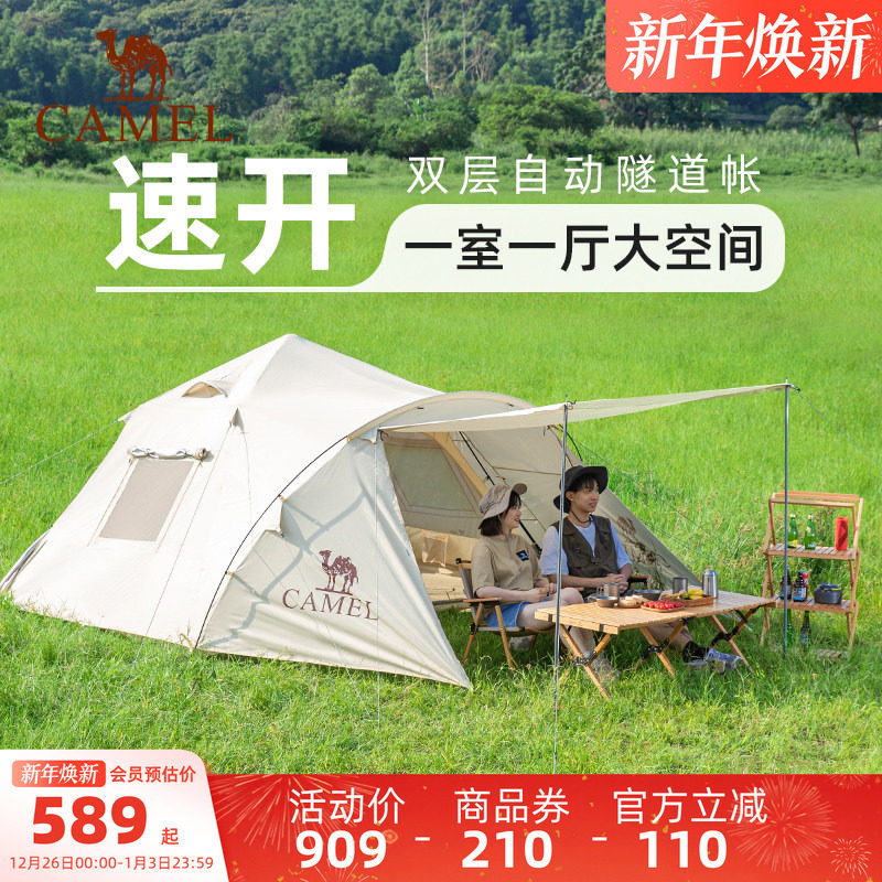 骆驼帐篷户外露营野营过夜便携式折叠全自动全套装备加厚黑胶新款