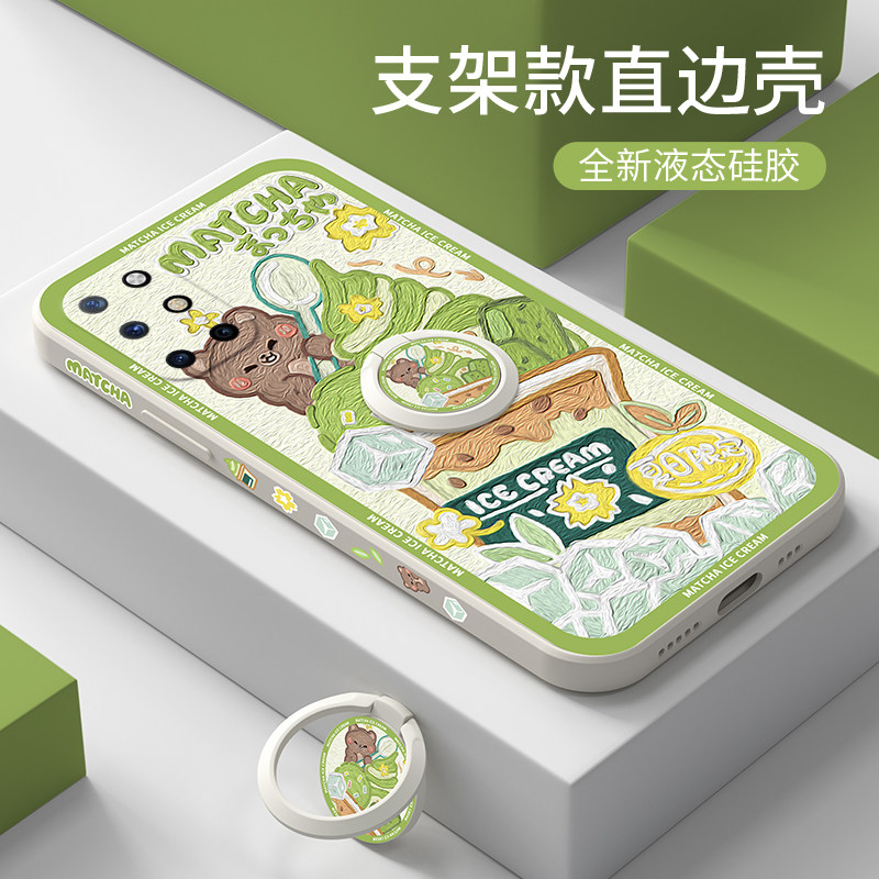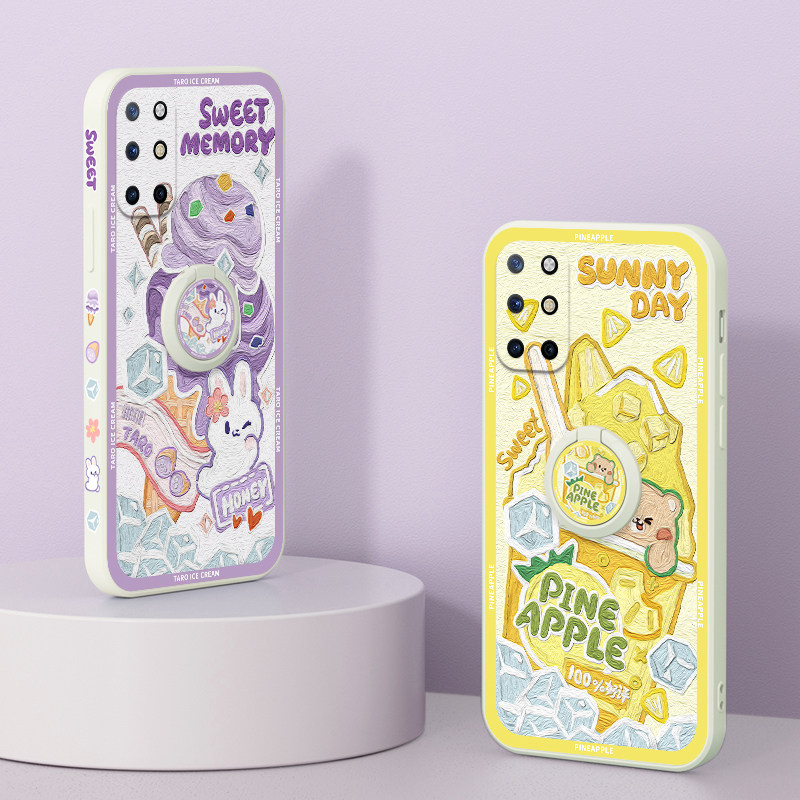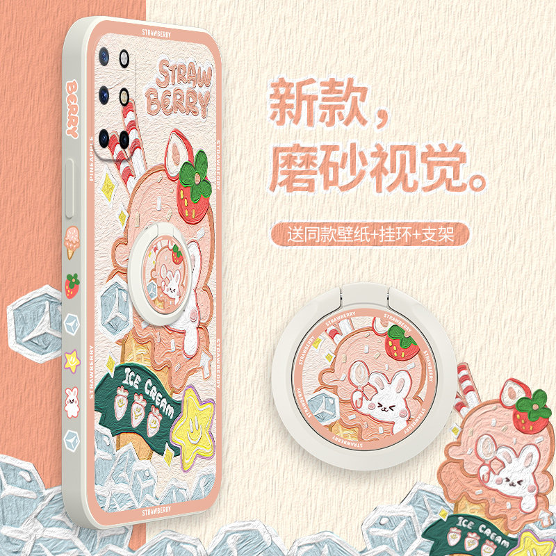一加8手机壳限量版一加8pro个性创意小熊直边液态一加8t全包镜头1+8带支架冰淇淋女oneplus8侧边指环扣一加八