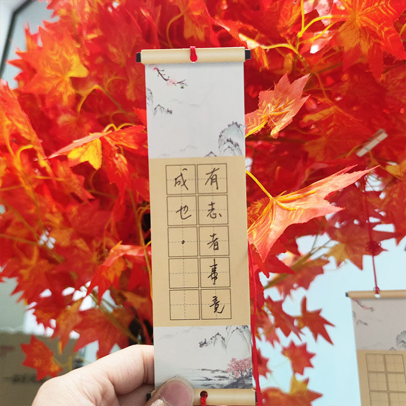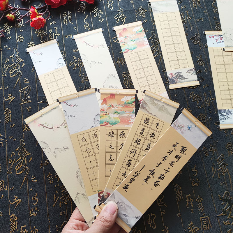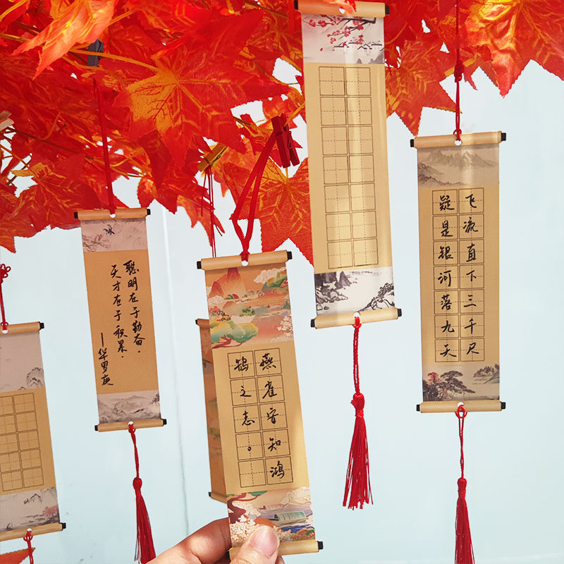新年硬笔书法作品纸中国风书签空白田字格14字古诗词小号尺寸卷轴扇子小学生手工悬挂展示挂件可书写练字帖纸